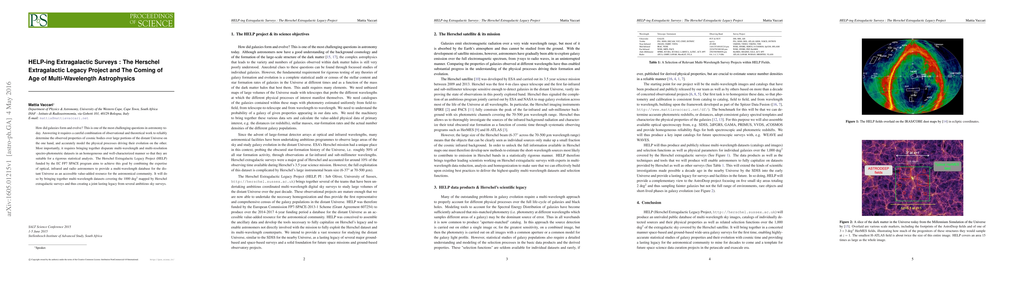 The Herschel Extragalactic Legacy Project (HELP) aims to combine multi-wavelength datasets from various sky surveys to create a comprehensive database for studying galaxy formation and evolution. This project will provide a valuable resource for the astronomical community by integrating optical, infrared, and radio data into a single, well-characterized dataset.