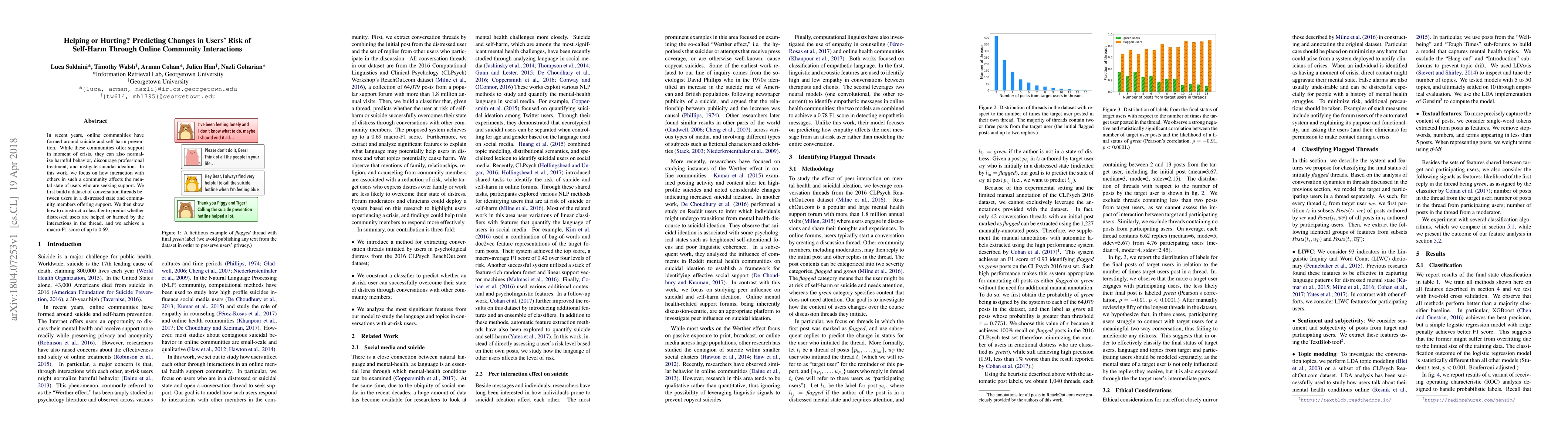In recent years, online communities have formed around suicide and self-harm prevention. While these communities offer support in moment of crisis, they can also normalize harmful behavior, discourage professional treatment, and instigate suicidal ideation. In this work, we focus on how interaction with others in such a community affects the mental state of users who are seeking support. We first build a dataset of conversation threads between users in a distressed state and community members offering support. We then show how to construct a classifier to predict whether distressed users are helped or harmed by the interactions in the thread, and we achieve a macro-F1 score of up to 0.69.