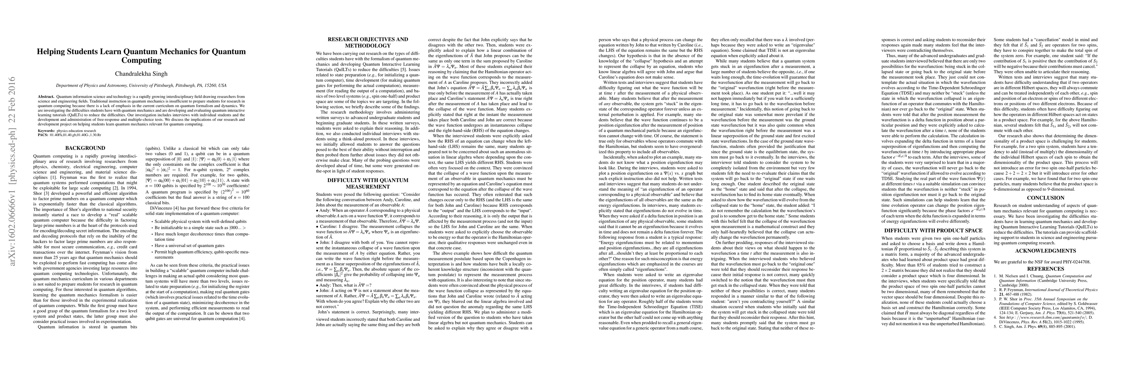 This paper explores the challenges students face in learning quantum mechanics for quantum computing and develops interactive learning tutorials to address these issues. The study combines interviews and assessments to evaluate the effectiveness of the new tutorials, aiming to better prepare students for quantum computing research.