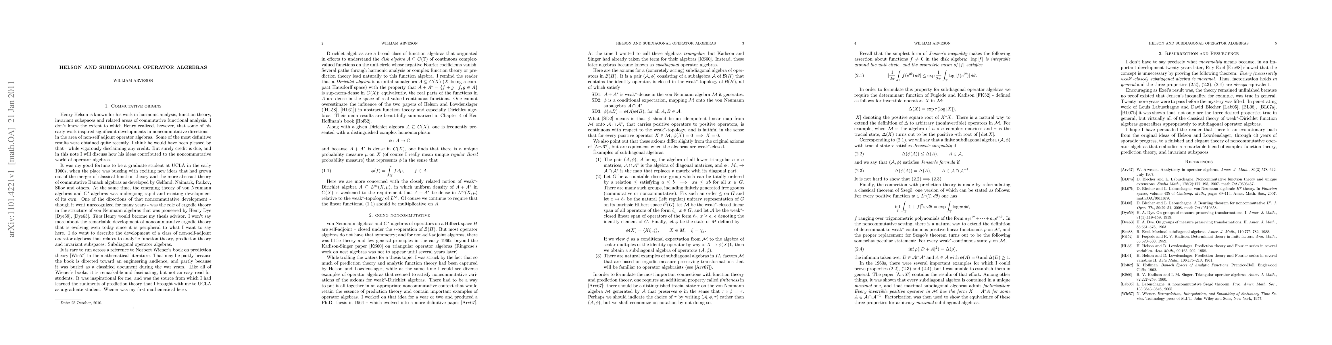 Summary: This paper explores the influence of Henry Helson's work, particularly the Helson-Lowdenslager papers, on the advancement of non-self-adjoint operator algebra theory in Hilbert spaces. It highlights the foundational role Helson's contributions played in shaping this mathematical field.