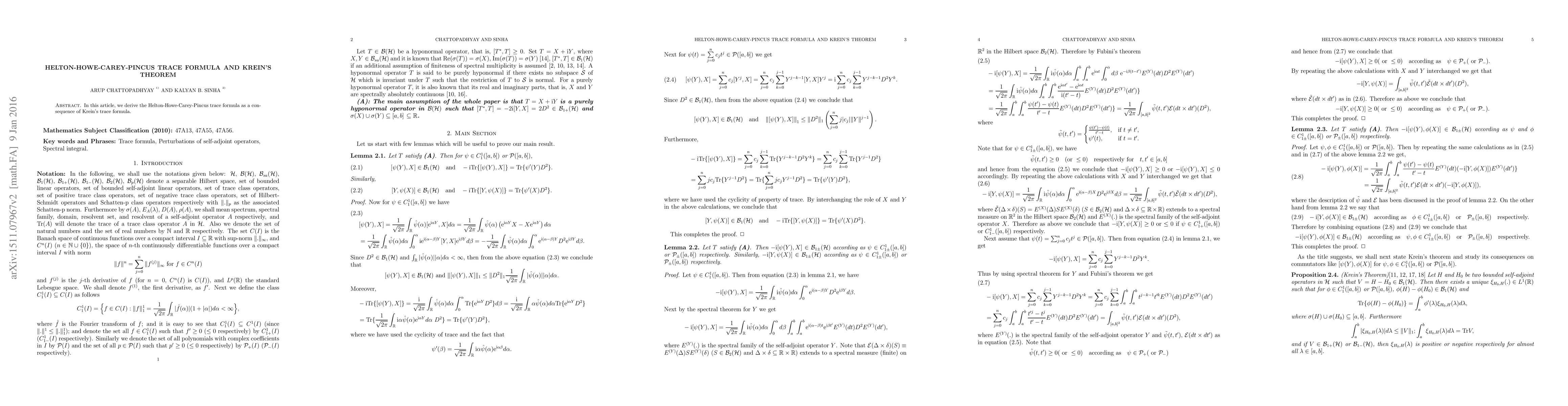 Summary: This paper derives the Helton-Howe-Carey-Pincus trace formula using Krein's trace formula, establishing a connection between these two important results in operator theory.