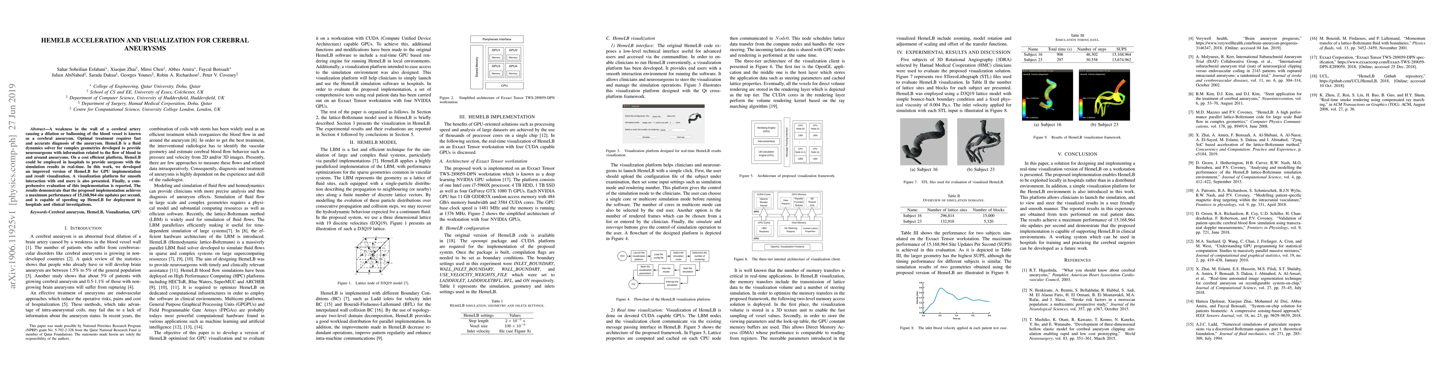 A weakness in the wall of a cerebral artery causing a dilation or ballooning of the blood vessel is known as a cerebral aneurysm. Optimal treatment requires fast and accurate diagnosis of the aneurysm. HemeLB is a fluid dynamics solver for complex geometries developed to provide neurosurgeons with information related to the flow of blood in and around aneurysms. On a cost efficient platform, HemeLB could be employed in hospitals to provide surgeons with the simulation results in real-time. In this work, we developed an improved version of HemeLB for GPU implementation and result visualization. A visualization platform for smooth interaction with end users is also presented. Finally, a comprehensive evaluation of this implementation is reported. The results demonstrate that the proposed implementation achieves a maximum performance of 15,168,964 site updates per second, and is capable of speeding up HemeLB for deployment in hospitals and clinical investigations.