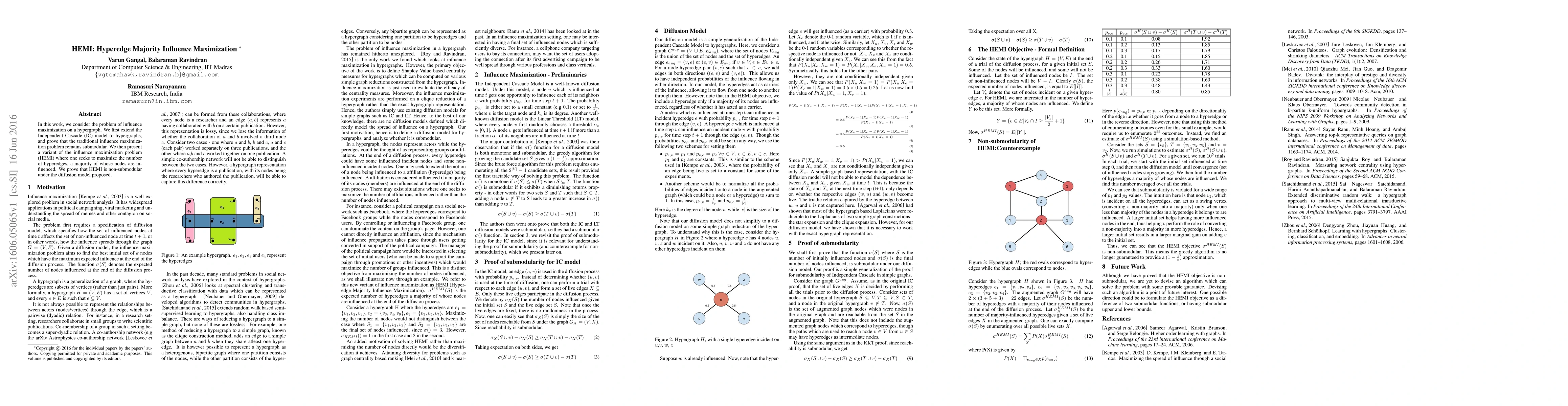 This paper extends the Independent Cascade model to hypergraphs and introduces the HEMI problem, which aims to maximize the number of hyperedges where a majority of nodes are influenced. The authors prove that traditional influence maximization remains submodular, but HEMI is non-submodular under the proposed diffusion model.