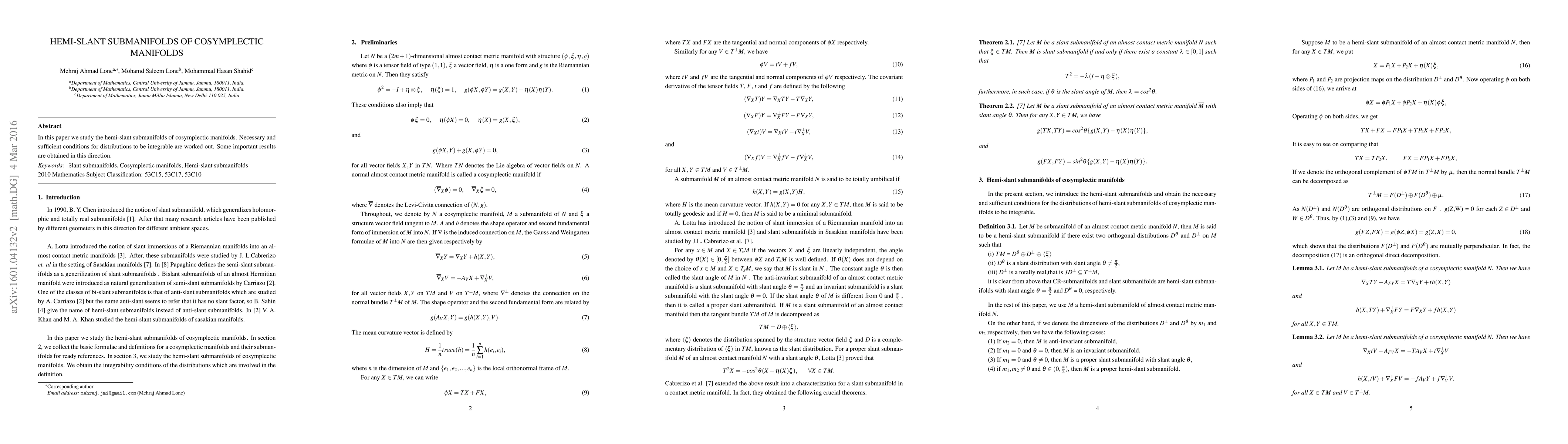 This paper investigates hemi-slant submanifolds within cosymplectic manifolds, establishing necessary and sufficient conditions for the integrability of their distributions, and deriving significant results related to these conditions.