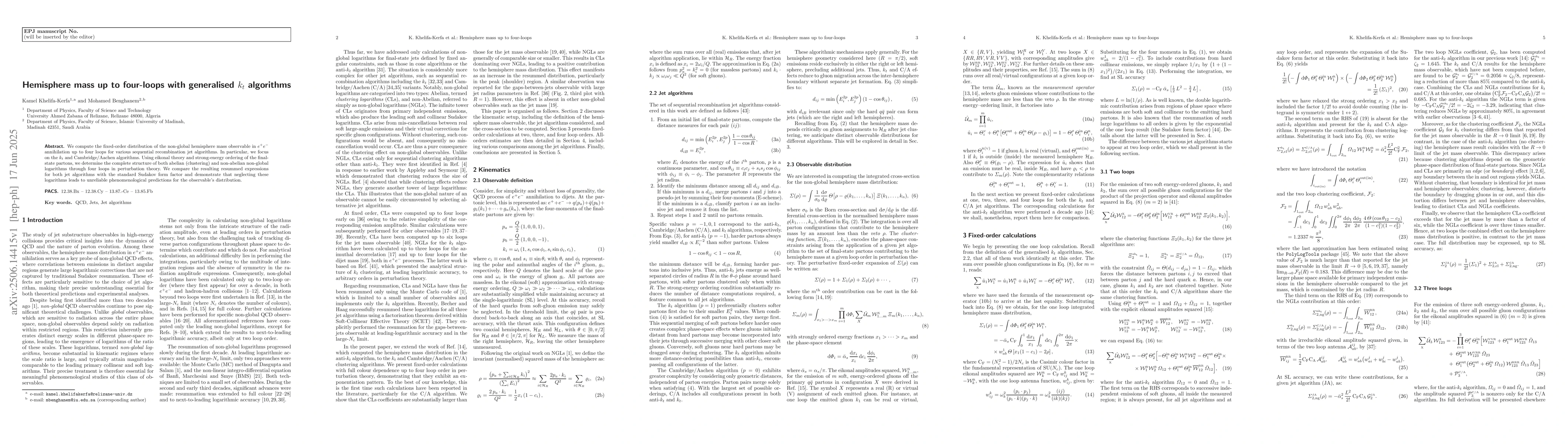 We compute the fixed-order distribution of the non-global hemisphere mass observable in $e^+ e^-$ annihilation up to four loops for various sequential recombination jet algorithms. In particular, we focus on the $k_t$ and Cambridge/Aachen algorithms. Using eikonal theory and strong-energy ordering of the final-state partons, we determine the complete structure of both abelian (clustering) and non-abelian non-global logarithms through four loops in perturbation theory. We compare the resulting resummed expressions for both jet algorithms with the standard Sudakov form factor and demonstrate that neglecting these logarithms leads to unreliable phenomenological predictions for the observable's distribution.