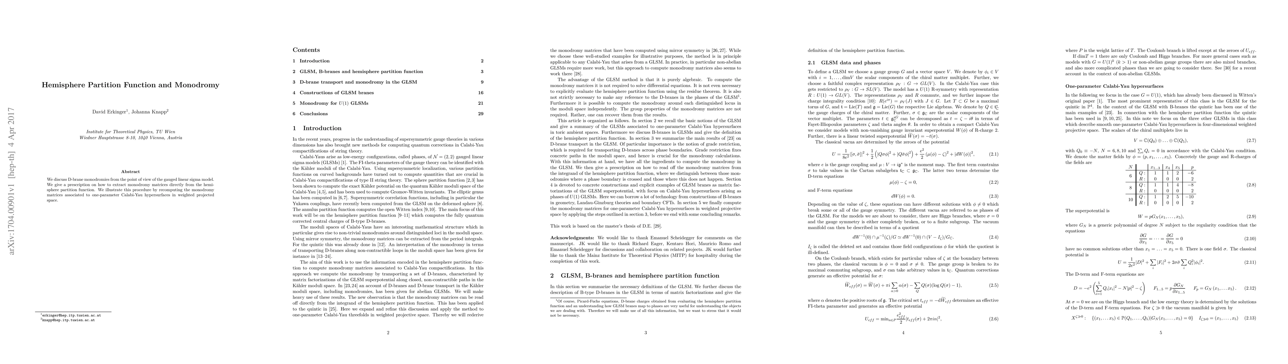 We discuss D-brane monodromies from the point of view of the gauged linear sigma model. We give a prescription on how to extract monodromy matrices directly from the hemisphere partition function. We illustrate this procedure by recomputing the monodromy matrices associated to one-parameter Calabi-Yau hypersurfaces in weighted projected space.