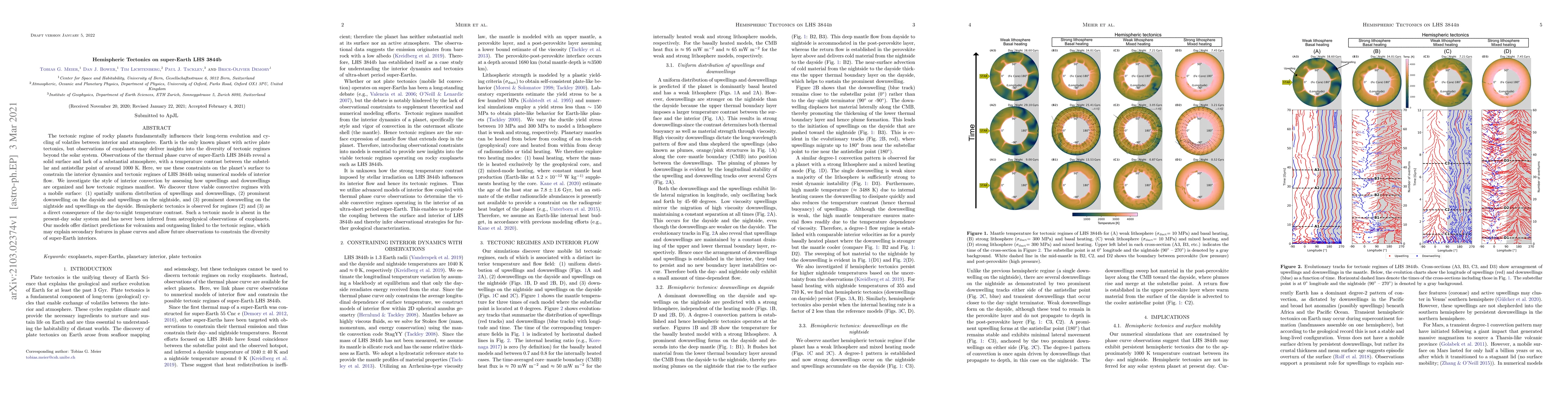 This study investigates the tectonic regimes of the super-Earth LHS 3844b using numerical models, revealing three possible convective regimes. Hemispheric tectonics, characterized by day-to-night temperature contrasts, is identified in two regimes, offering novel insights into exoplanetary tectonics absent in the solar system.