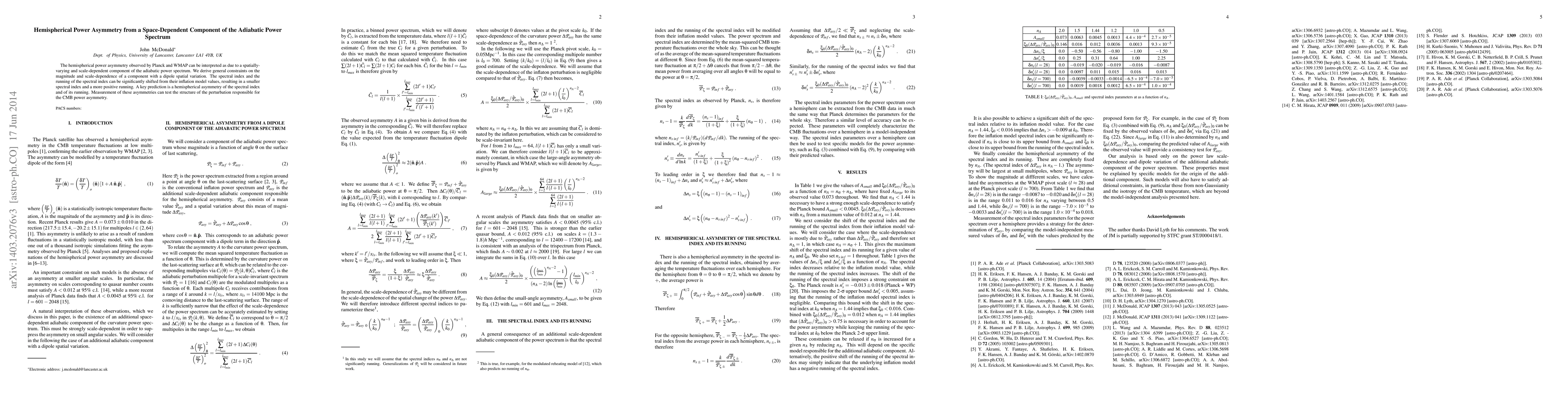 This paper interprets hemispherical power asymmetry in the CMB from Planck and WMAP as due to a spatially-varying adiabatic power spectrum component. It derives constraints on the magnitude and scale-dependence of this component, predicting shifts in the spectral index and its running, and proposes that measuring these asymmetries can test the underlying perturbation structure.