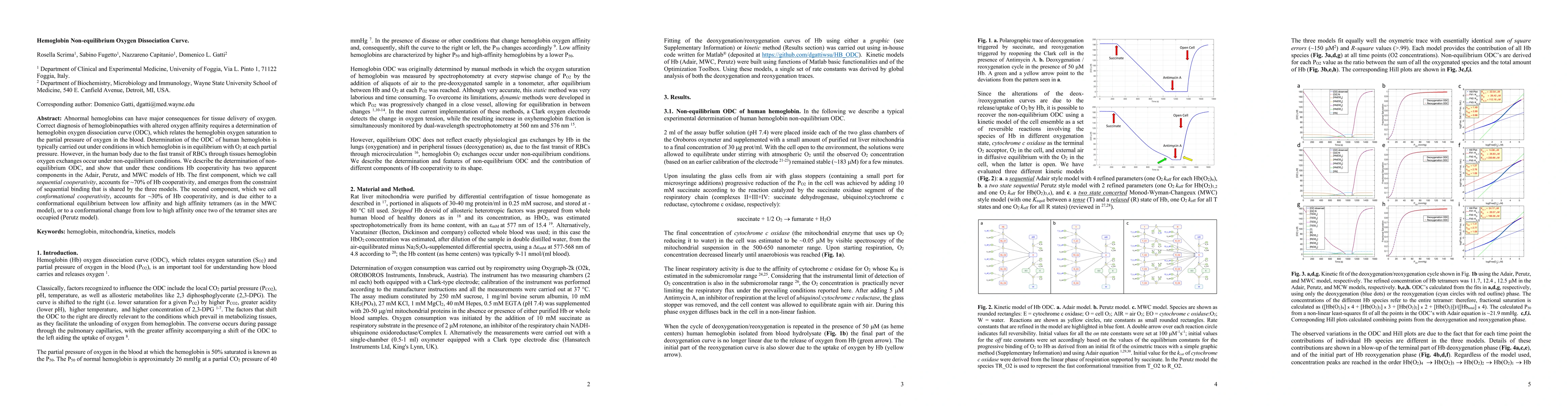 Abnormal hemoglobins can have major consequences for tissue delivery of oxygen. Correct diagnosis of hemoglobinopathies with altered oxygen affinity requires a determination of hemoglobin oxygen dissociation curve (ODC), which relates the hemoglobin oxygen saturation to the partial pressure of oxygen in the blood. Determination of the ODC of human hemoglobin is typically carried out under conditions in which hemoglobin is in equilibrium with O2 at each partial pressure. However, in the human body due to the fast transit of RBCs through tissues hemoglobin oxygen exchanges occur under non-equilibrium conditions. We describe the determination of non-equilibrium ODC, and show that under these conditions Hb cooperativity has two apparent components in the Adair, Perutz, and MWC models of Hb. The first component, which we call sequential cooperativity, accounts for ~70% of Hb cooperativity, and emerges from the constraint of sequential binding that is shared by the three models. The second component, which we call conformational cooperativity, accounts for ~30% of Hb cooperativity, and is due either to a conformational equilibrium between low affinity and high affinity tetramers (as in the MWC model), or to a conformational change from low to high affinity once two of the tetramer sites are occupied (Perutz model).