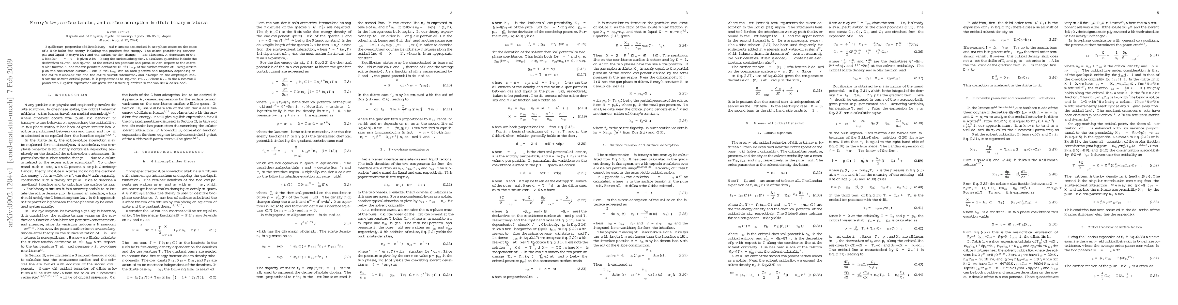 This research paper explores how dilute binary fluid mixtures behave in two-phase states, focusing on Henry's law, surface tension, and surface adsorption, with implications for understanding critical temperature and pressure changes.