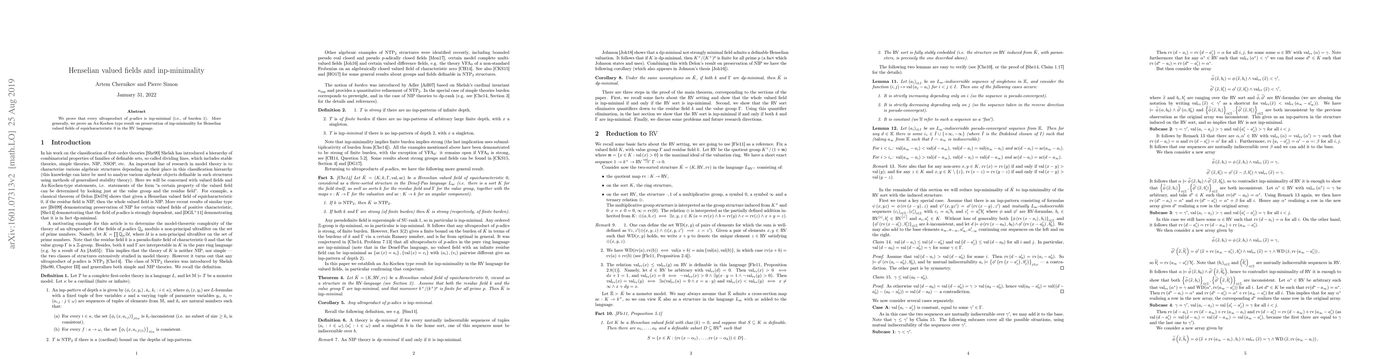 This research proves that every ultraproduct of p-adics is inp-minimal, and extends this result to Henselian valued fields in equicharacteristic 0.