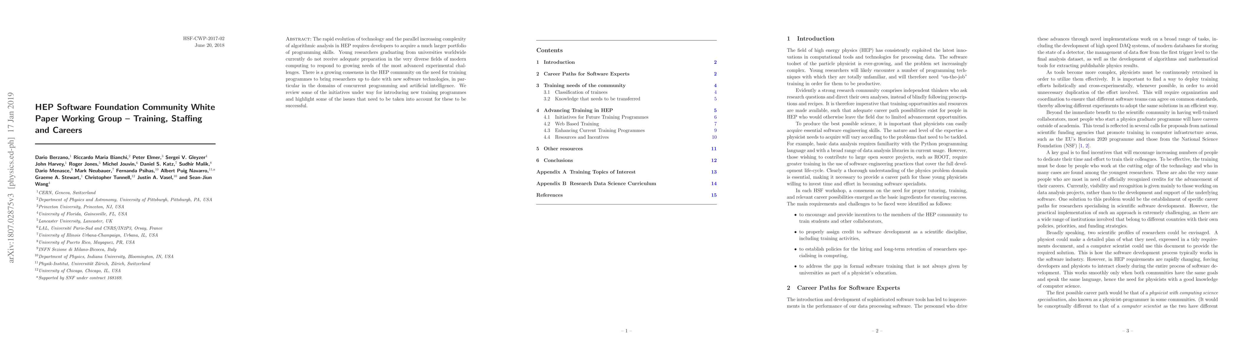 The HEP Software Foundation Working Group emphasizes the necessity for enhanced training programs to equip young researchers with advanced computing skills, particularly in concurrent programming and AI, to meet the complex demands of high-energy physics. Current university curricula fall short in preparing students for these evolving technological needs, prompting a call for new initiatives to address this gap.
