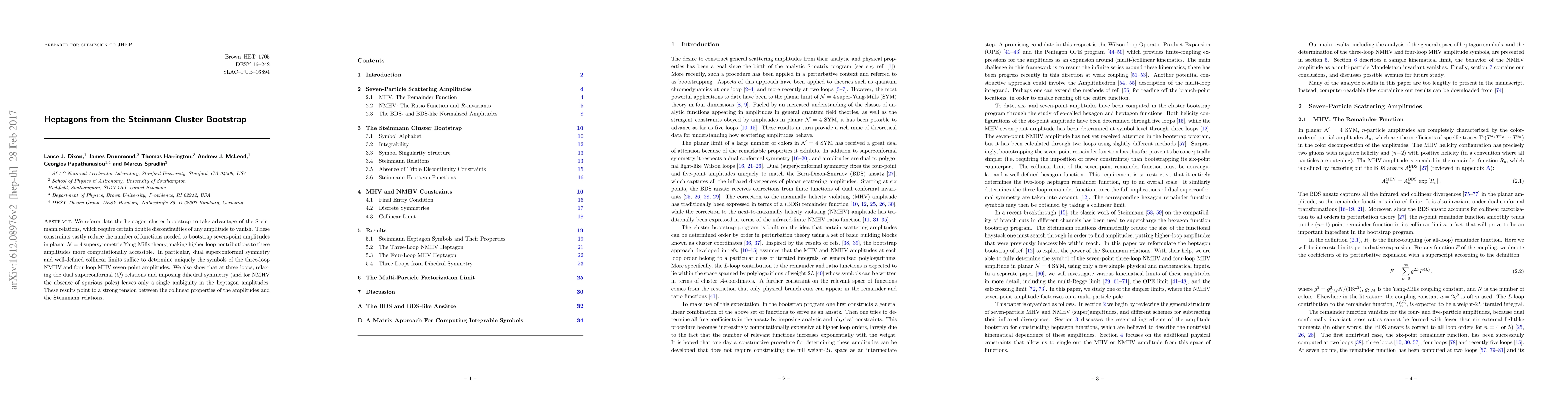 We reformulate the heptagon cluster bootstrap to take advantage of the Steinmann relations, which require certain double discontinuities of any amplitude to vanish. These constraints vastly reduce the number of functions needed to bootstrap seven-point amplitudes in planar $\mathcal{N} = 4$ supersymmetric Yang-Mills theory, making higher-loop contributions to these amplitudes more computationally accessible. In particular, dual superconformal symmetry and well-defined collinear limits suffice to determine uniquely the symbols of the three-loop NMHV and four-loop MHV seven-point amplitudes. We also show that at three loops, relaxing the dual superconformal ($\bar{Q}$) relations and imposing dihedral symmetry (and for NMHV the absence of spurious poles) leaves only a single ambiguity in the heptagon amplitudes. These results point to a strong tension between the collinear properties of the amplitudes and the Steinmann relations.