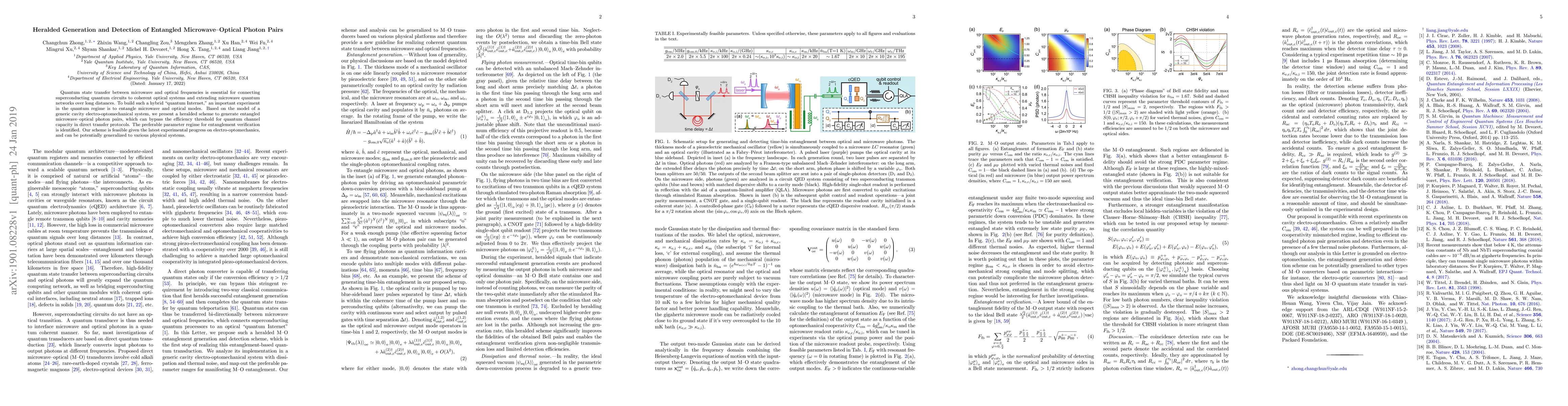 Quantum state transfer between microwave and optical frequencies is essential for connecting superconducting quantum circuits to coherent optical systems and extending microwave quantum networks over long distances. To build such a hybrid `quantum Internet,' an important experiment in the quantum regime is to entangle microwave and optical modes. Based on the model of a generic cavity electro-optomechanical system, we present a heralded scheme to generate entangled microwave--optical photon pairs, which can bypass the efficiency threshold for quantum channel capacity in direct transfer protocols. The parameter regime for entanglement verification is identified that is compatible with realistic experimental settings. Our scheme is feasible given the latest experimental progress on electro-optomechanics, and can be potentially generalized to various physical systems.