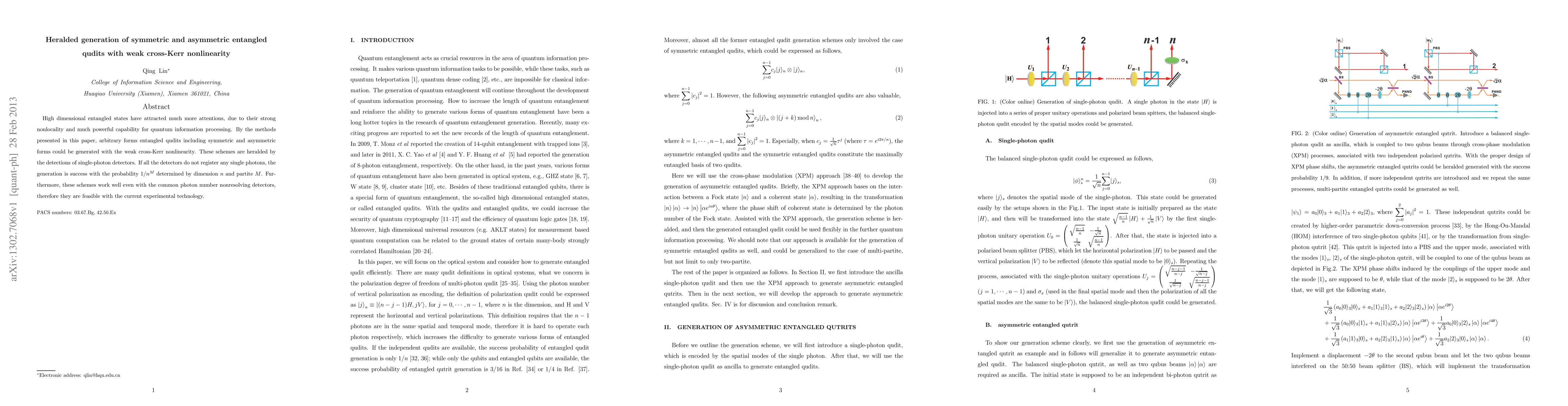 This paper presents methods for generating high-dimensional entangled qudits, including symmetric and asymmetric forms, using weak cross-Kerr nonlinearity. The generation is heralded by single-photon detectors, ensuring success with a probability of $1/n^{M}$ based on dimension $n$ and partite $M$, and is feasible with current technology.