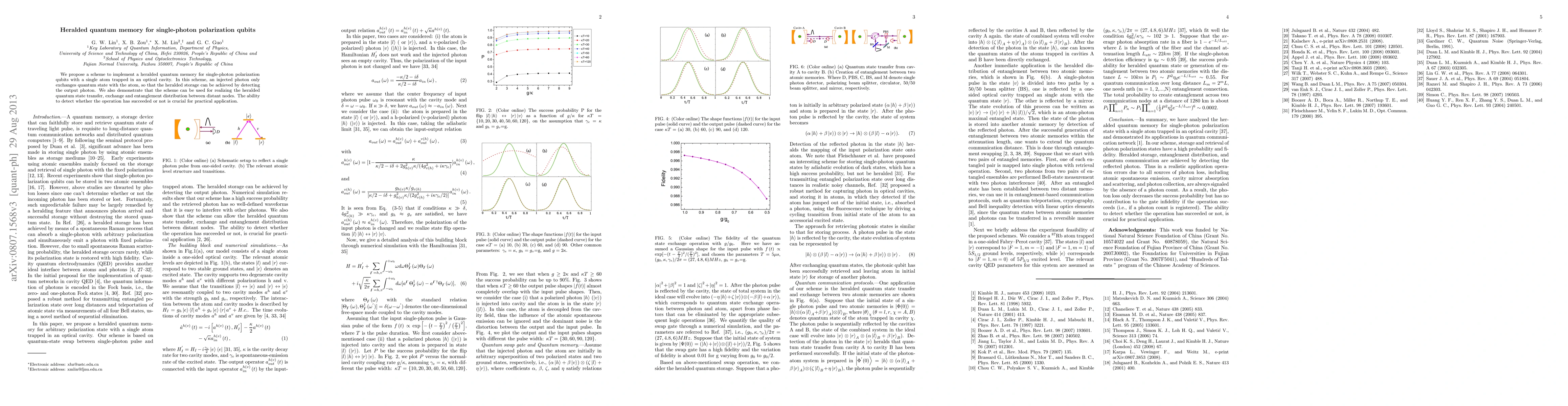 The paper proposes a method for implementing a heralded quantum memory using a single trapped atom in an optical cavity to store single-photon polarization qubits, enabling quantum state transfer, exchange, and entanglement distribution. Success detection is crucial for practical applications.