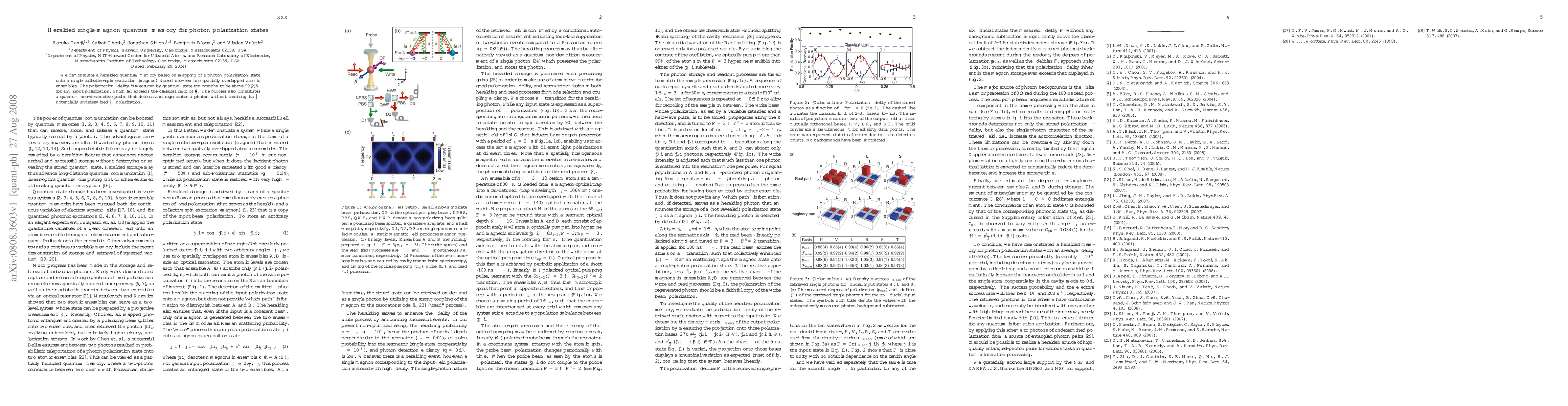 This paper presents a heralded quantum memory system that maps photon polarization states onto a single magnon in two overlapping atomic ensembles, achieving a polarization fidelity of over 90(2)%, significantly surpassing the classical limit. The method serves as a quantum non-destructive probe, enabling detection and regeneration of the photon's polarization state without altering it.