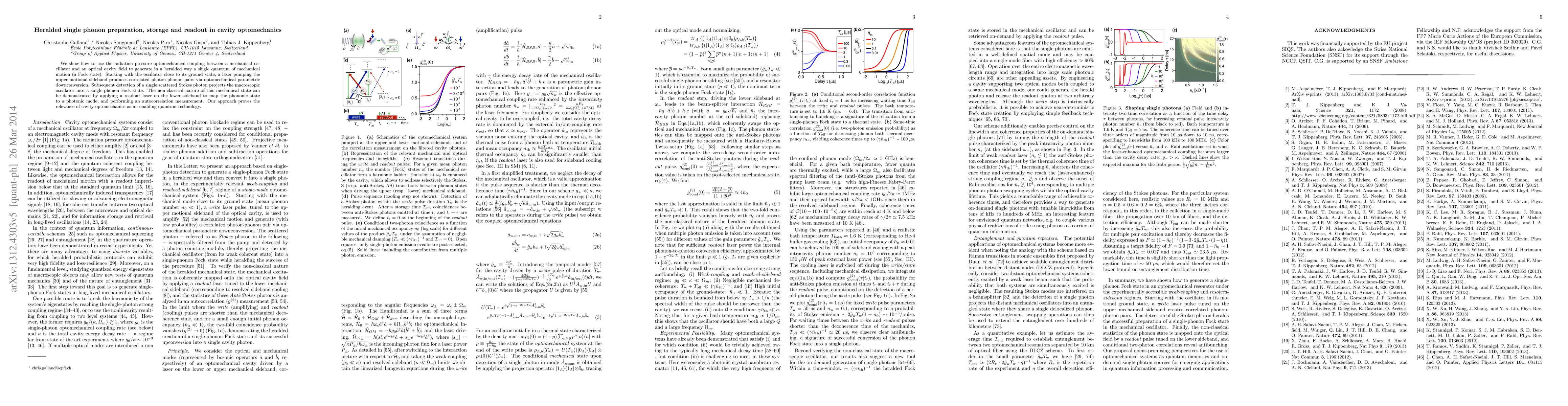 This paper proposes a method for generating, storing, and reading out a single phonon in a cavity optomechanics system using radiation pressure coupling. By detecting a Stokes photon, the system can be projected into a single-phonon state, which is then converted to a photonic mode for readout, demonstrating its potential for future quantum technologies.