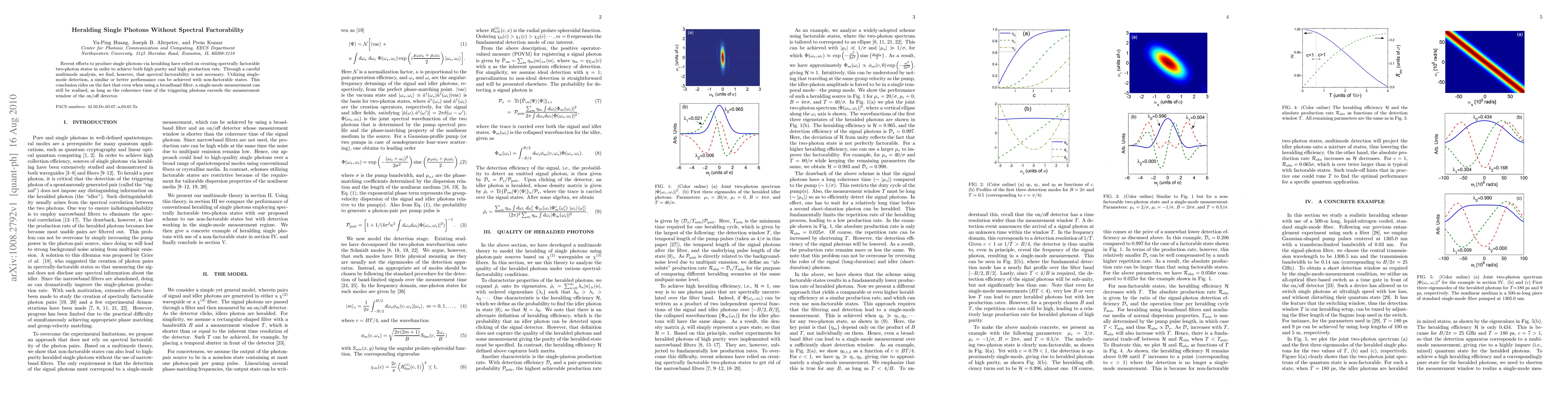 This paper demonstrates that high-purity single-photon heralding can be achieved without relying on spectrally factorable two-photon states, showing that single-mode detection can yield similar or better performance using non-factorable states, provided the coherence time of triggering photons exceeds the detector's measurement window.