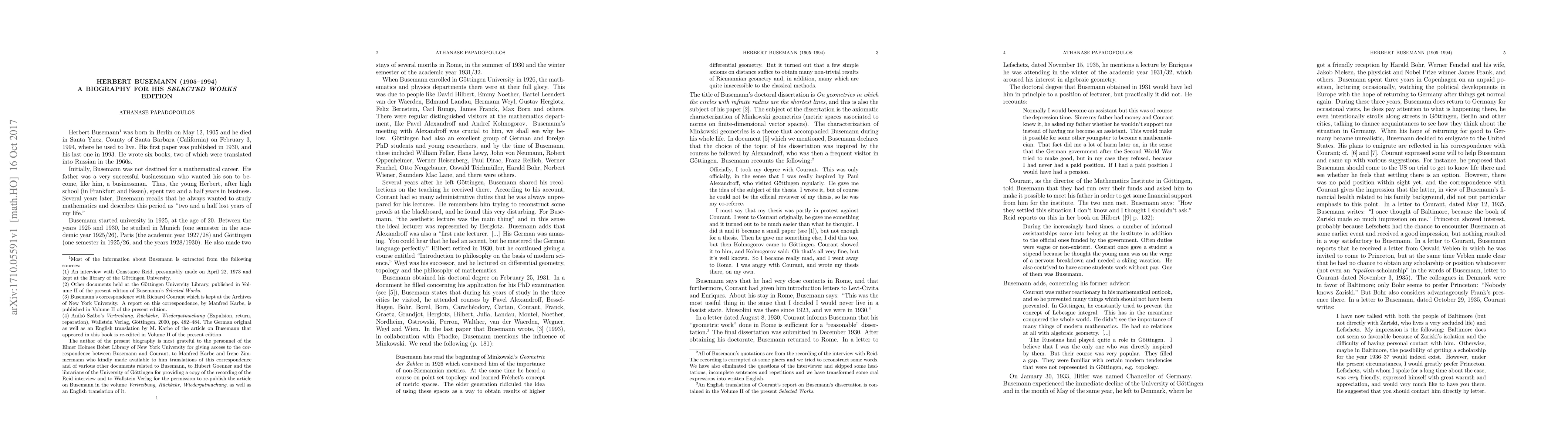 This is a biography of Herbert Busemann (1905--1994). The final version will appear in Volume I of the Selected Works of Herbert Busemann (2 volumes, Springer Verlag, to appear in 2017).