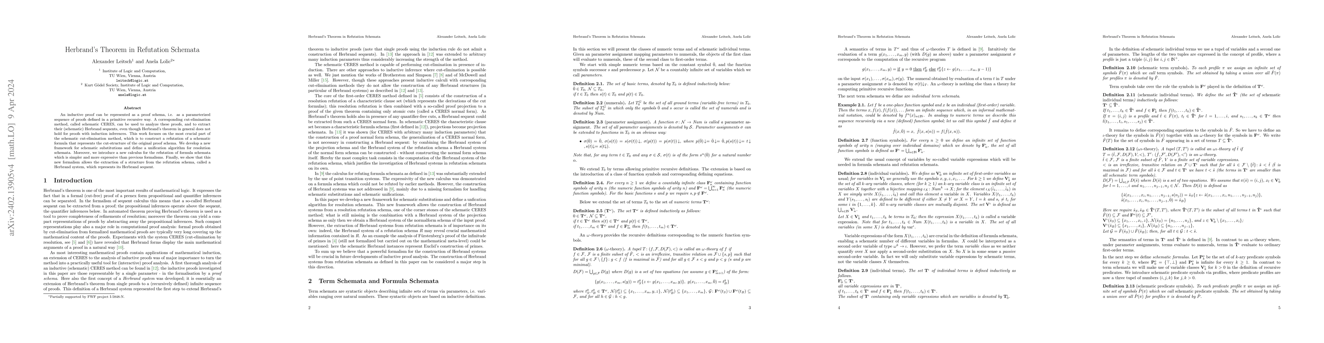 This paper introduces a new framework for schematic substitutions and develops a unification algorithm for resolution schemata to construct refutations of schematic formulas representing cut structures in inductive proof schemas. It demonstrates that this approach allows the extraction of a Herbrand schema representing the Herbrand sequent, despite the general non-applicability of Herbrand's theorem to proofs involving induction.