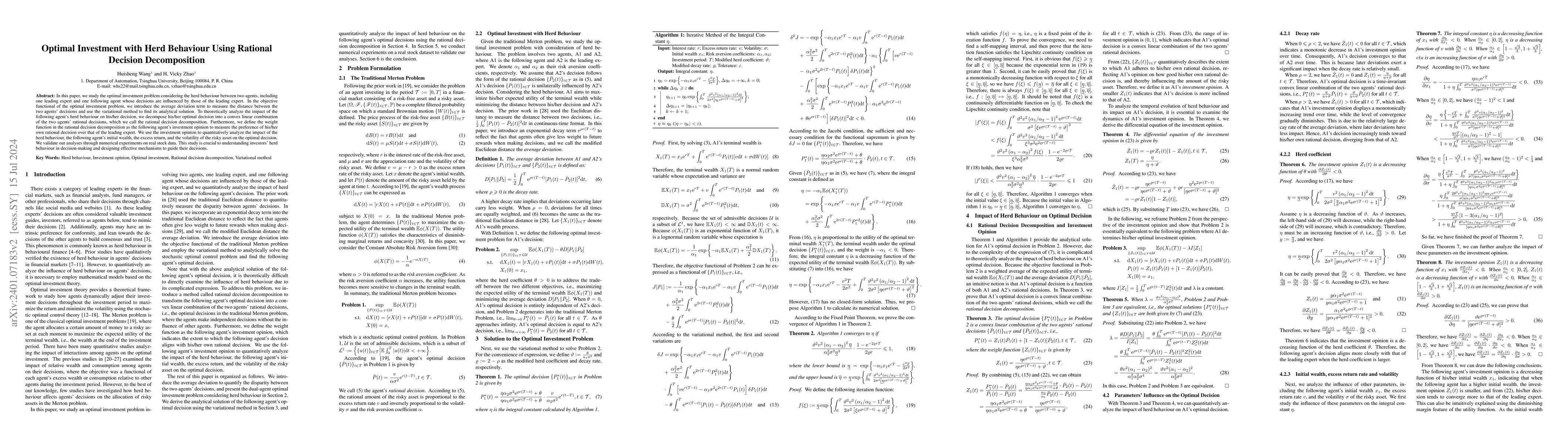 This paper explores optimal investment strategies in a dual-agent framework where herd behavior influences decisions. It introduces a method to decompose optimal decisions into rational components and measures the agents' investment opinion preference, validated by simulations on real stock data.