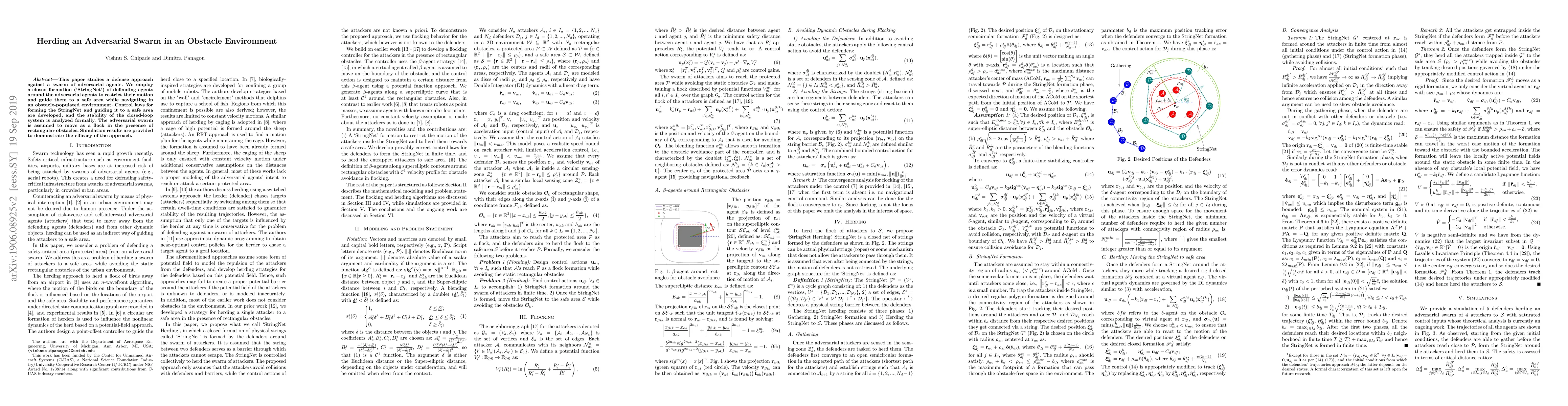 This paper proposes a defense strategy using a "StringNet" formation of defending agents to corral and guide a swarm of adversarial agents through an obstacle-filled environment to a safe area. The stability of the system is formally analyzed, and simulations validate the effectiveness of the approach.