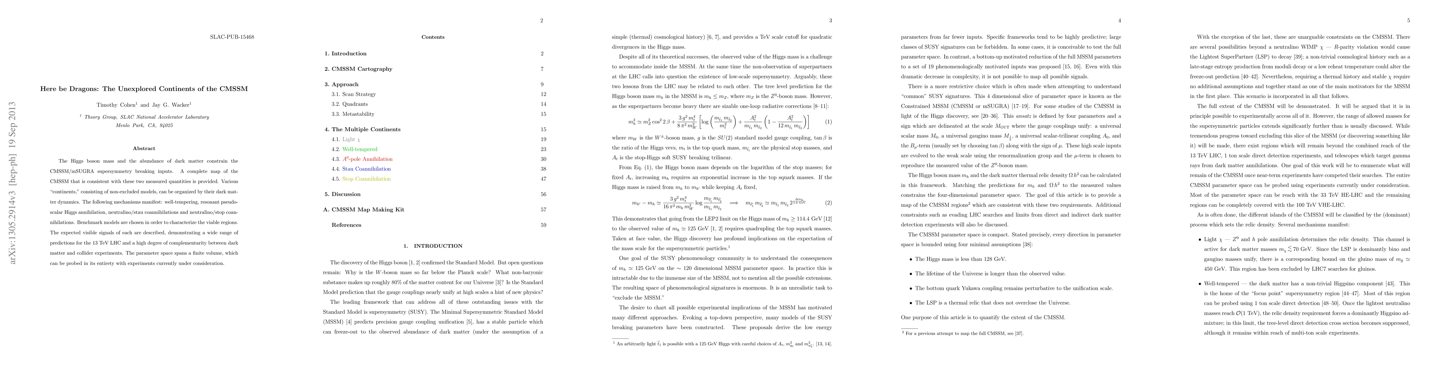 A comprehensive map of the CMSSM supersymmetry breaking inputs is provided, constrained by Higgs boson mass and dark matter abundance, with predicted visible signals for LHC experiments.