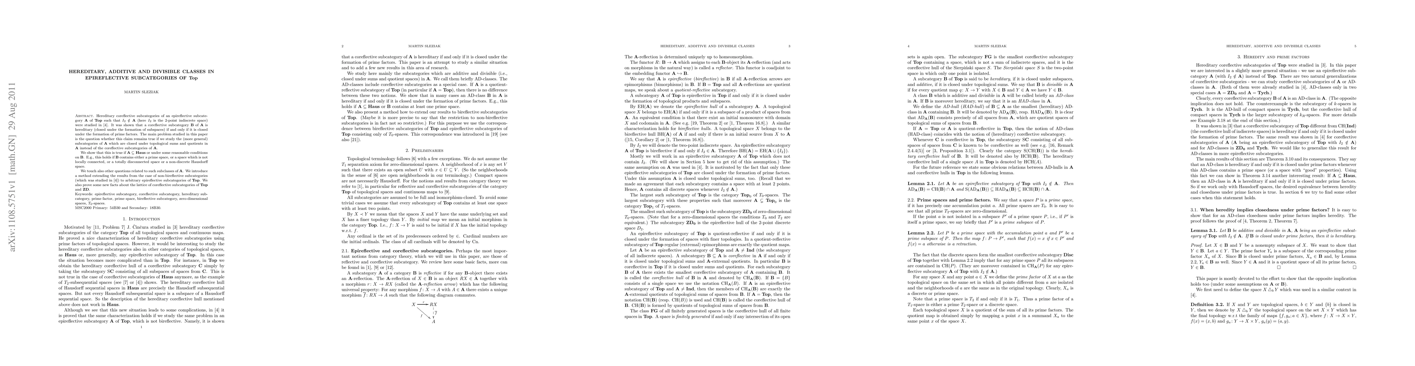 Hereditary coreflective subcategories of an epireflective subcategory A of Top such that I_2\notin A (here I_2 is the 2-point indiscrete space) were studied in [C]. It was shown that a coreflective subcategory B of A is hereditary (closed under the formation of subspaces) if and only if it is closed under the formation of prime factors. The main problem studied in this paper is the question whether this claim remains true if we study the (more general) subcategories of A which are closed under topological sums and quotients in A instead of the coreflective subcategories of A. We show that this is true if A \subseteq Haus or under some reasonable conditions on B. E.g., this holds if B contains either a prime space, or a space which is not locally connected, or a totally disconnected space or a non-discrete Hausdorff space. We touch also other questions related to such subclasses of A. We introduce a method extending the results from the case of non-bireflective subcategories (which was studied in [C]) to arbitrary epireflective subcategories of Top. We also prove some new facts about the lattice of coreflective subcategories of Top and ZD. [C] J. \v{C}in\v{c}ura: Heredity and coreflective subcategories of the category of topological spaces. Appl. Categ. Structures 9, 131-138 (2001)