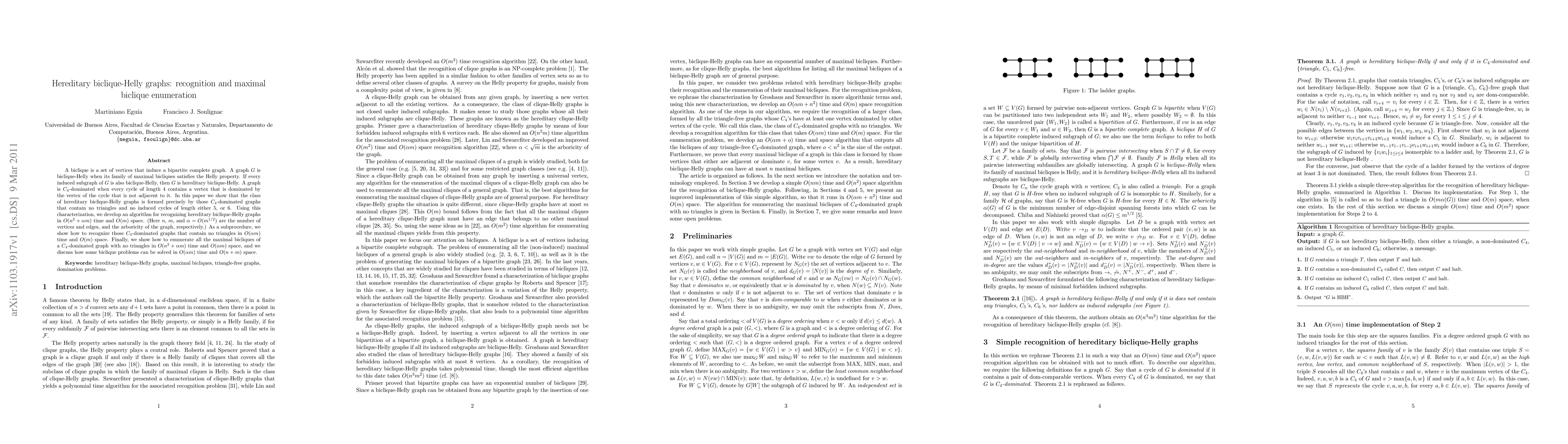 This paper characterizes hereditary biclique-Helly graphs as C_4-dominated graphs lacking triangles and certain induced cycles, and develops algorithms for recognizing these graphs and enumerating their maximal bicliques in optimal time and space complexity.