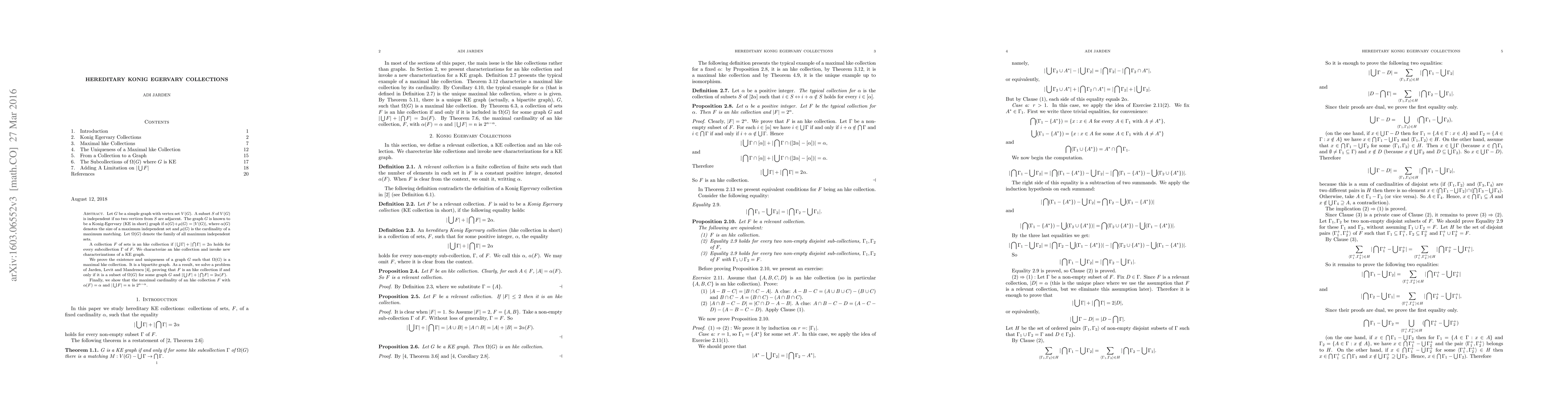 Let $G$ be a simple graph with vertex set $V(G)$. A subset $S$ of $V(G)$ is independent if no two vertices from $S$ are adjacent. The graph $G$ is known to be a Konig-Egervary (KE in short) graph if $\alpha(G) + \mu(G)= |V(G)|$, where $\alpha(G)$ denotes the size of a maximum independent set and $\mu(G)$ is the cardinality of a maximum matching. Let $\Omega(G)$ denote the family of all maximum independent sets. A collection $F$ of sets is an hke collection if $|\bigcup \Gamma|+|\bigcap \Gamma|=2\alpha$ holds for every subcollection $\Gamma$ of $F$. We characterize an hke collection and invoke new characterizations of a KE graph. We prove the existence and uniqueness of a graph $G$ such that $\Omega(G)$ is a maximal hke collection. It is a bipartite graph. As a result, we solve a problem of Jarden, Levit and Mandrescu \cite{jlm}, proving that $F$ is an hke collection if and only if it is a subset of $\Omega(G)$ for some graph $G$ and $|\bigcup F|+|\bigcap F|=2\alpha(F)$. Finally, we show that the maximal cardinality of an hke collection $F$ with $\alpha(F)=\alpha$ and $|\bigcup F|=n$ is $2^{n-\alpha}$.