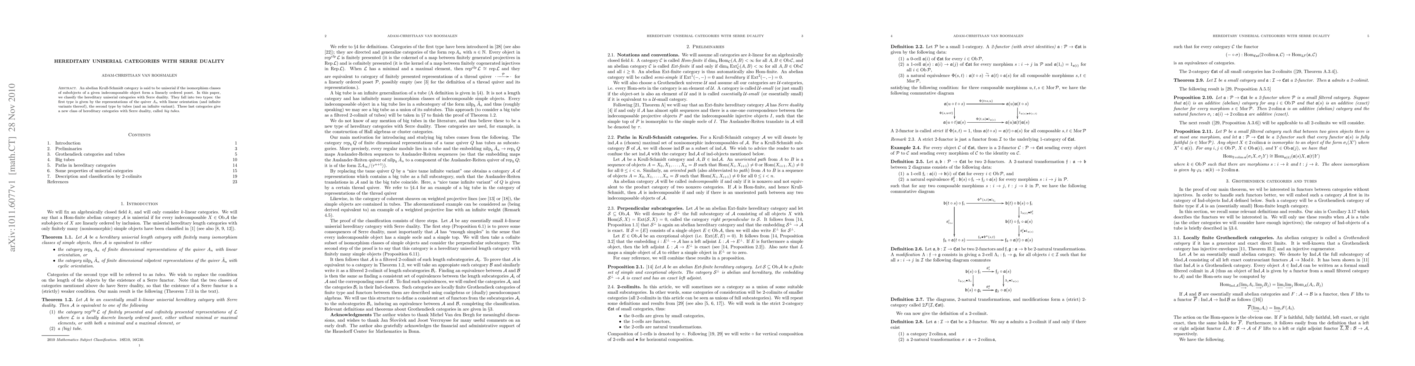 This paper classifies hereditary uniserial categories with Serre duality, identifying two types: representations of oriented quivers A_n and new "big tube" categories, which extend traditional tube structures.