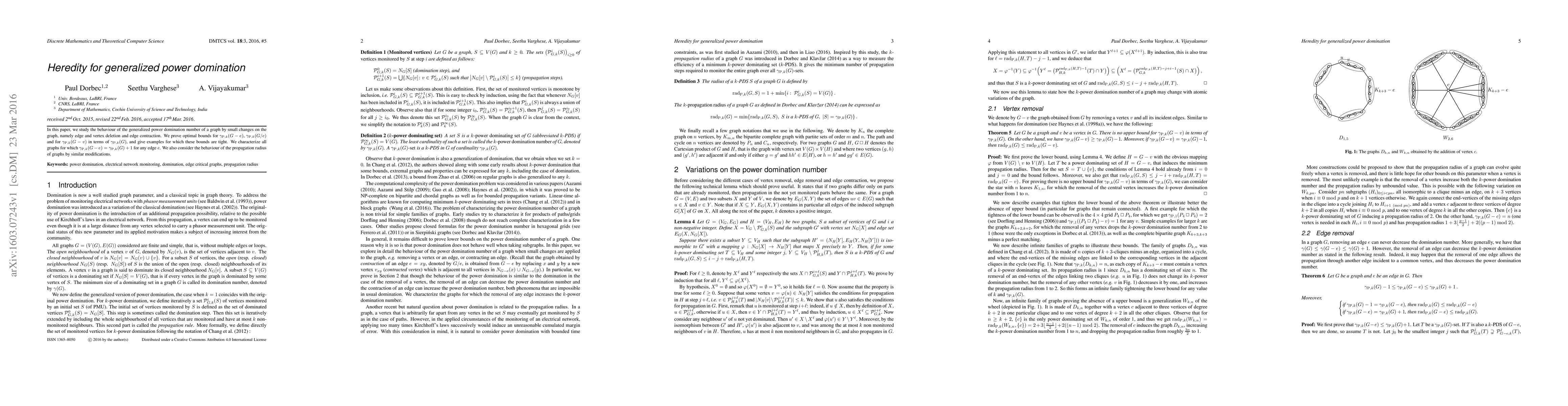 In this paper, we study the behaviour of the generalized power domination number of a graph by small changes on the graph, namely edge and vertex deletion and edge contraction. We prove optimal bounds for $\gamma\_{p,k}(G-e)$, $\gamma\_{p,k}(G/e)$ and for $\gamma\_{p,k}(G-v)$ in terms of $\gamma\_{p,k}(G)$, and give examples for which these bounds are tight. We characterize all graphs for which $\gamma\_{p,k}(G-e) = \gamma\_{p,k}(G)+1$ for any edge $e$. We also consider the behaviour of the propagation radius of graphs by similar modifications.