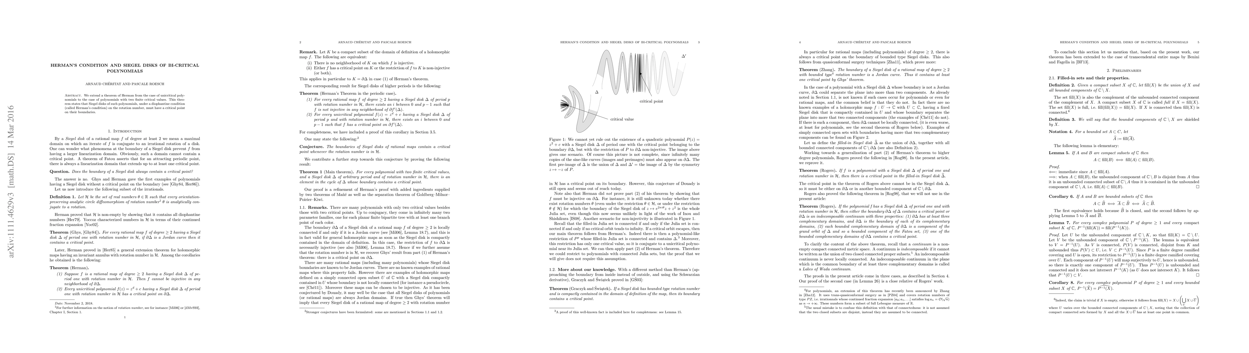 Researchers extend a theorem on polynomials with critical values to two values, showing that certain Siegel disks must have a critical point on their boundaries under Herman's condition.
