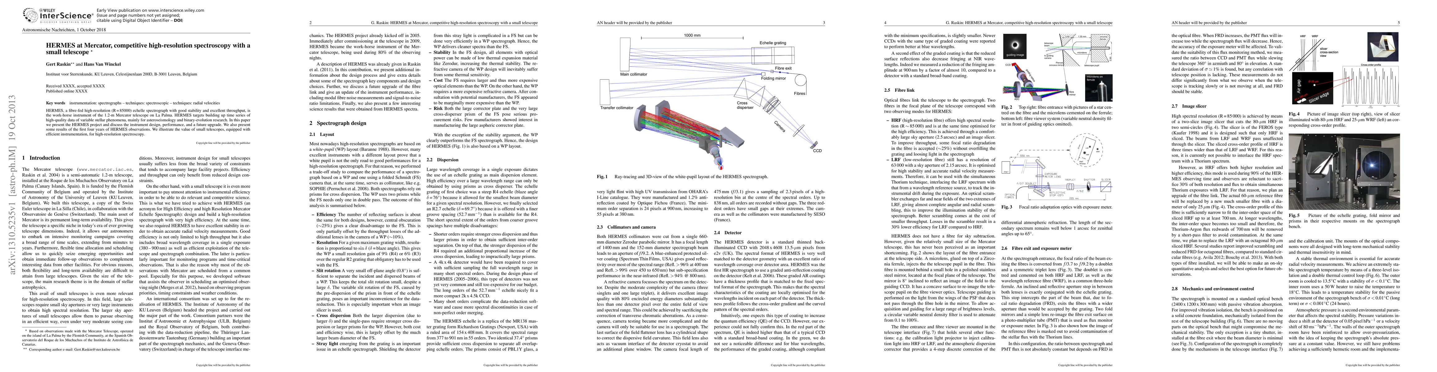 HERMES is a high-resolution spectrograph on the Mercator telescope, designed for precise stellar observations, particularly for asteroseismology and binary-evolution studies. The paper discusses its design, performance, and initial results, highlighting the effectiveness of small telescopes with advanced instrumentation for competitive spectroscopy.
