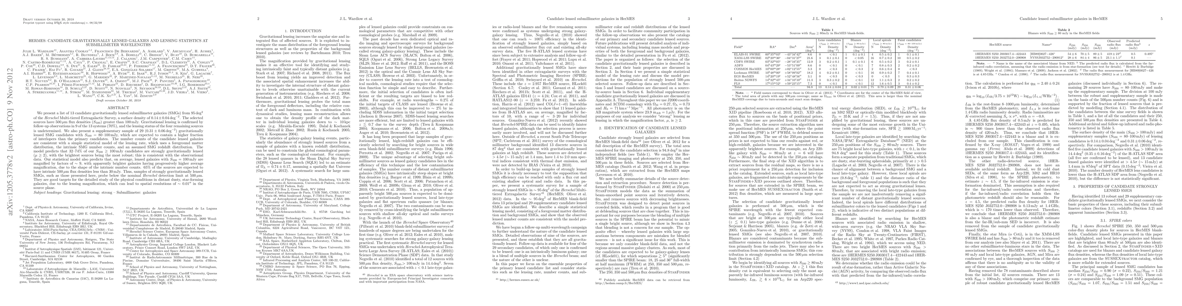 This paper identifies 13 candidate gravitationally lensed submillimeter galaxies from the Herschel Multi-tiered Extragalactic Survey, confirming lensing in 9 of them. A statistical model predicts that these lensed galaxies are significantly magnified, making them ideal targets for studying distant star-forming galaxies.