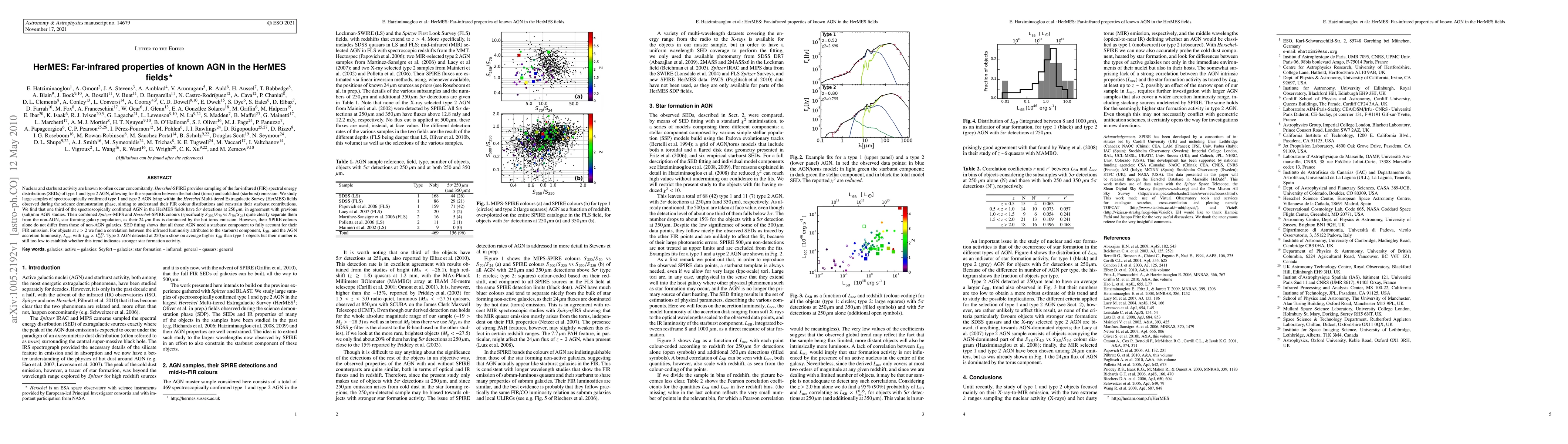 Nuclear and starburst activity are known to often occur concomitantly. Herschel-SPIRE provides sampling of the FIR SEDs of type 1 and type 2 AGN, allowing for the separation between the hot dust (torus) and cold dust (starburst) emission. We study large samples of spectroscopically confirmed type 1 and type 2 AGN lying within the Herschel Multi-tiered Extragalactic Survey (HerMES) fields observed during the science demonstration phase, aiming to understand their FIR colour distributions and constrain their starburst contributions. We find that one third of the spectroscopically confirmed AGN in the HerMES fields have 5-sigma detections at 250um, in agreement with previous (sub)mm AGN studies. Their combined Spitzer-MIPS and Herschel-SPIRE colours - specifically S(250)/S(70) vs. S(70)/S(24) - quite clearly separate them from the non-AGN, star-forming galaxy population, as their 24-um flux is dominated by the hot torus emission. However, their SPIRE colours alone do not differ from those of non-AGN galaxies. SED fitting shows that all those AGN need a starburst component to fully account for their FIR emission. For objects at z > 2, we find a correlation between the infrared luminosity attributed to the starburst component, L(SB), and the AGN accretion luminosity, L(acc), with L(SB) propto L(acc)^0.35. Type 2 AGN detected at 250um show on average higher L(SB) than type 1 objects but their number is still too low to establish whether this trend indicates stronger star-formation activity.