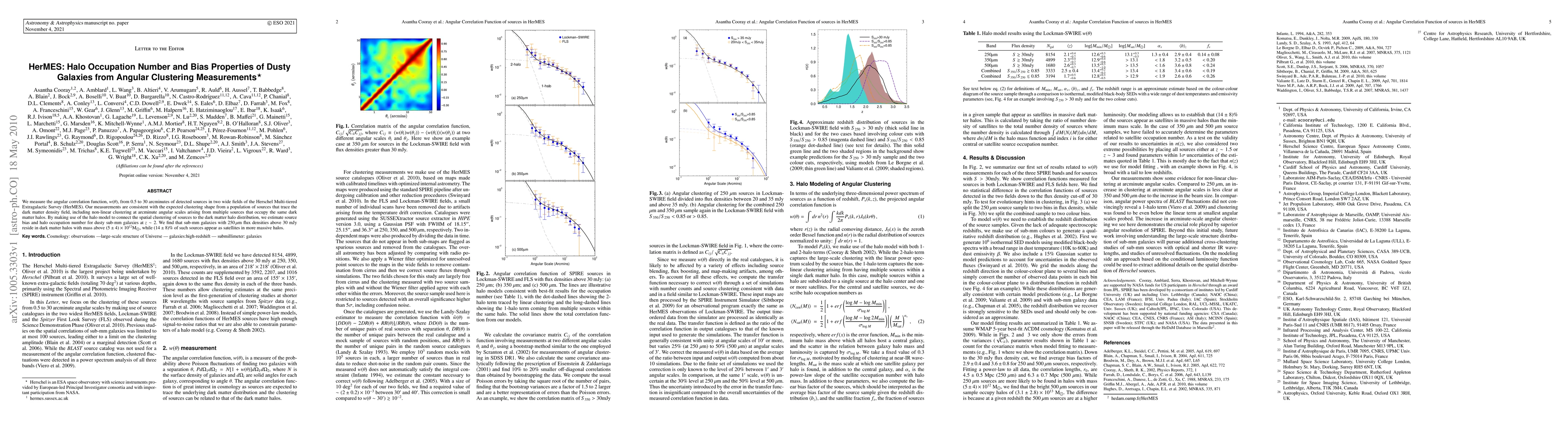 This paper measures the angular clustering of dusty sub-mm galaxies from the HerMES survey, finding that high-flux galaxies trace dark matter halos with masses above (5±4) x 10^12 M_sun, and that 14±8% of these galaxies are satellites in more massive halos. The study uses the halo model to estimate source bias and halo occupation number.