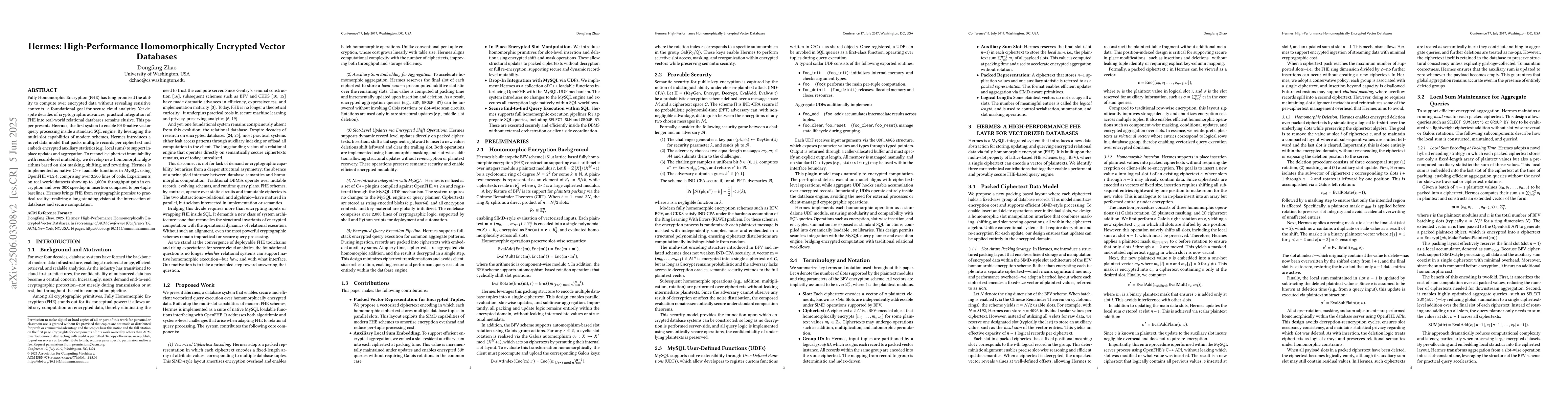 Fully Homomorphic Encryption (FHE) has long promised the ability to compute over encrypted data without revealing sensitive contents -- a foundational goal for secure cloud analytics. Yet despite decades of cryptographic advances, practical integration of FHE into real-world relational databases remains elusive. This paper presents \textbf{Hermes}, the first system to enable FHE-native vector query processing inside a standard SQL engine. By leveraging the multi-slot capabilities of modern schemes, Hermes introduces a novel data model that packs multiple records per ciphertext and embeds encrypted auxiliary statistics (e.g., local sums) to support in-place updates and aggregation. To reconcile ciphertext immutability with record-level mutability, we develop new homomorphic algorithms based on slot masking, shifting, and rewriting. Hermes is implemented as native C++ loadable functions in MySQL using OpenFHE v1.2.4, comprising over 3,500 lines of code. Experiments on real-world datasets show up to 1{,}600$\times$ throughput gain in encryption and over 30$\times$ speedup in insertion compared to per-tuple baselines. Hermes brings FHE from cryptographic promise to practical reality -- realizing a long-standing vision at the intersection of databases and secure computation.