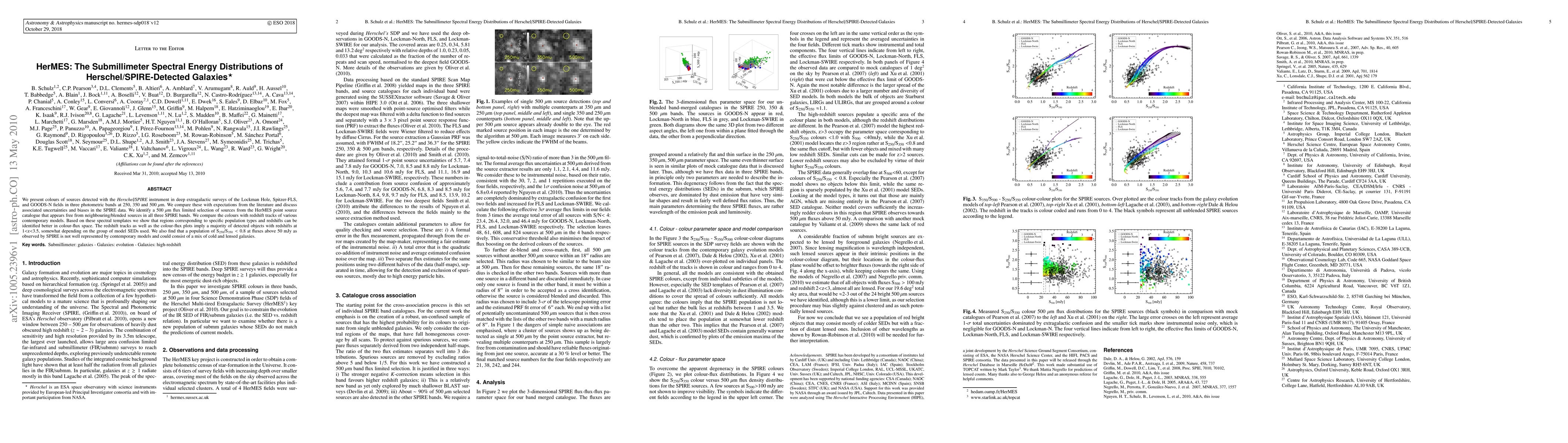 The HerMES study analyzes the submillimeter spectral energy distributions of galaxies detected by Herschel/SPIRE in deep extragalactic surveys, identifying a majority of objects at redshifts between 1 and 3.5, while noting a population of galaxies not well represented by current models.