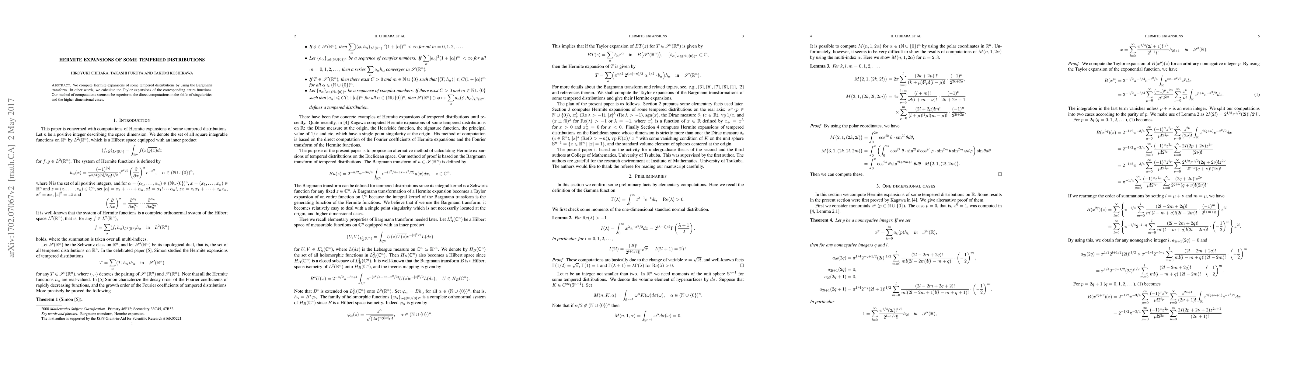 Title: Hermite expansions of some tempered distributions Summary: This paper calculates Hermite expansions of tempered distributions via the Bargmann transform, presenting a method that outperforms direct computations in managing shifts of singularities and higher dimensions.