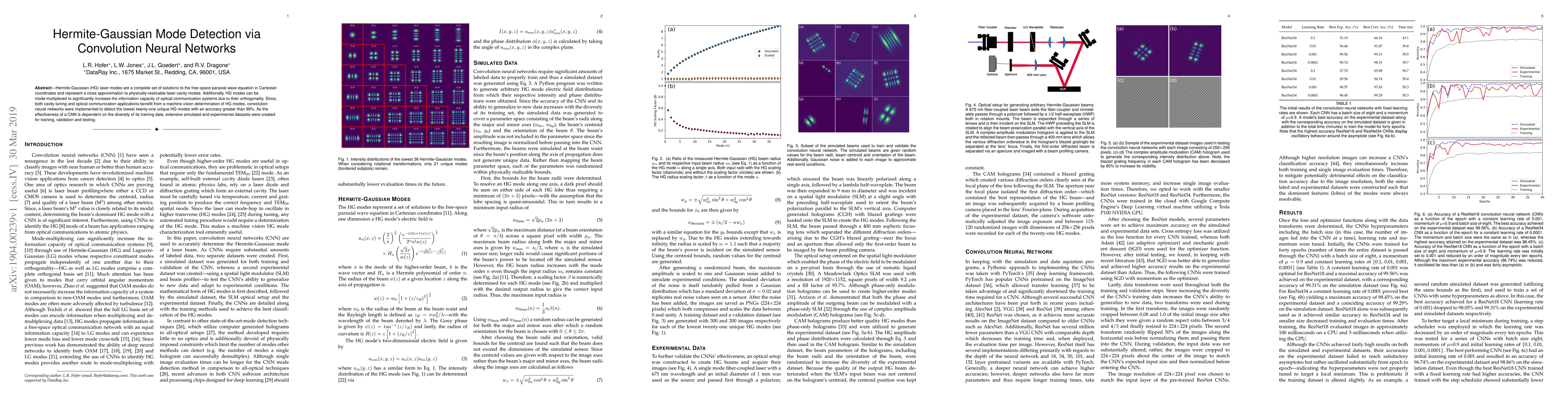 This research uses Convolutional Neural Networks (CNNs) to accurately detect the lowest twenty-one unique Hermite-Gaussian (HG) laser modes, achieving over 99% accuracy. Extensive simulated and experimental datasets were employed for training, validating, and testing the CNN, demonstrating its potential for cavity tuning and increasing optical communication capacity through mode multiplexing.