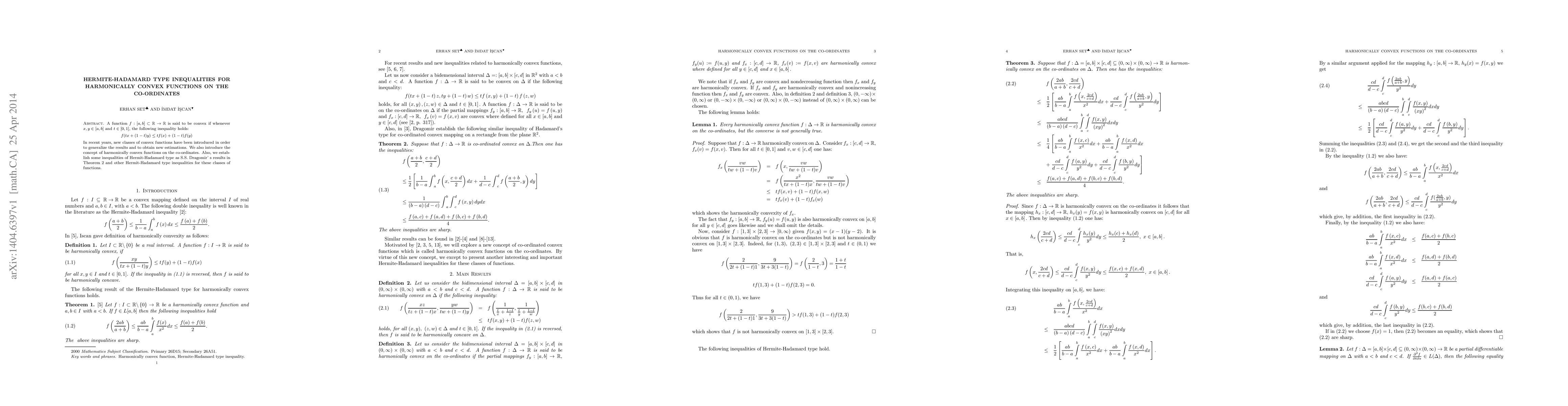 In recent years, new classes of convex functions have been introduced in order to generalize the results and to obtain new estimations. We also introduce the concept of harmonically convex functions on the co-ordinates. Also, we establish some inequalities of Hermit-Hadamard type as S.S. Dragomir' s results in Theorem 2 and other Hermit-Hadamard type inequalities for these classes of functions.