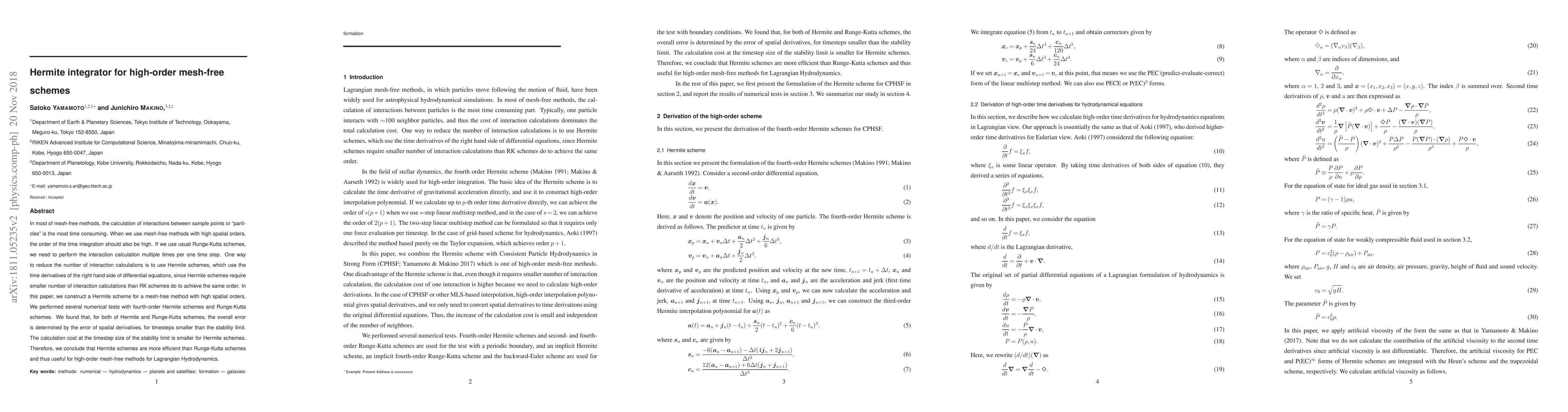 Researchers developed a Hermite scheme for high-order mesh-free methods, finding it more efficient than Runge-Kutta schemes in reducing calculation costs, especially at stability limits.