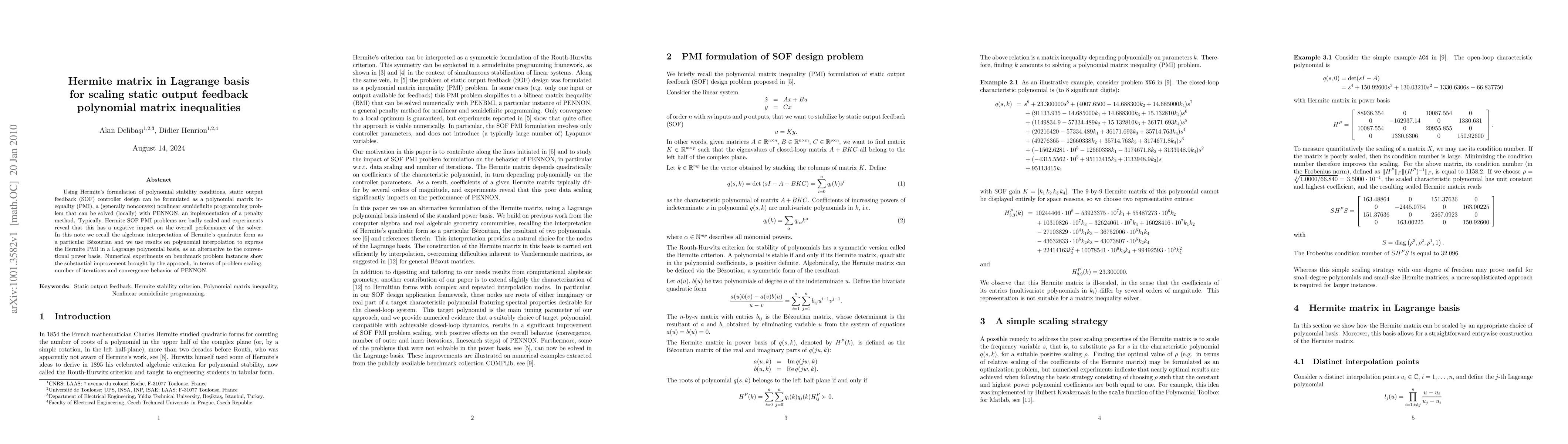 Researchers improve static output feedback controller design using a new Lagrange basis for polynomial matrix inequalities, leading to better problem scaling and solver performance.