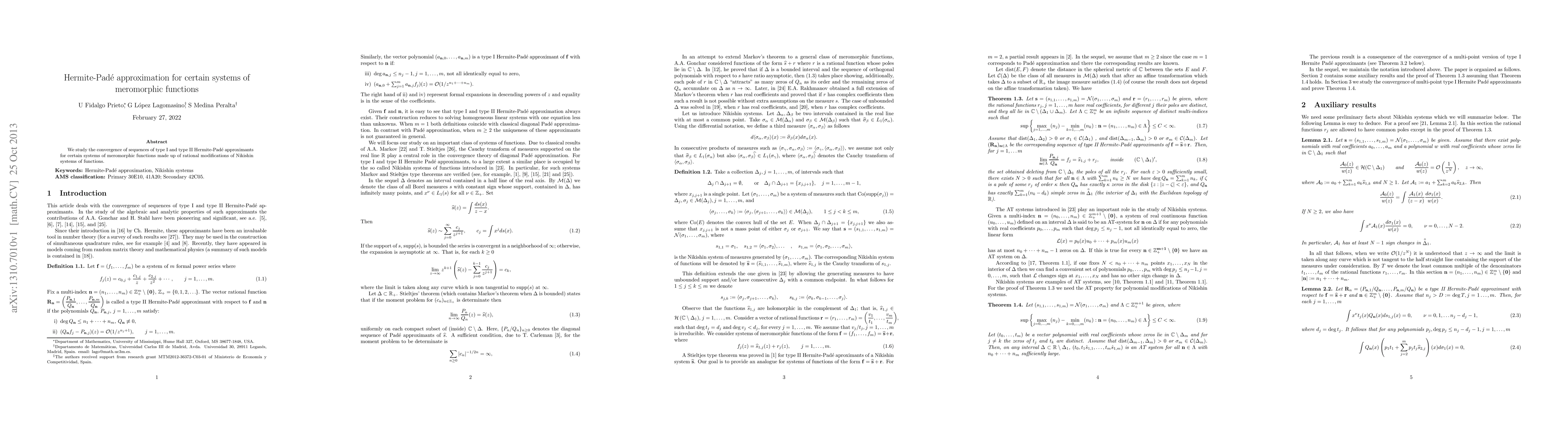 Summary: This paper investigates the convergence of Hermite-Padé approximants for systems of meromorphic functions, focusing on rational modifications of Nikishin systems, and examines both type I and type II approximants.