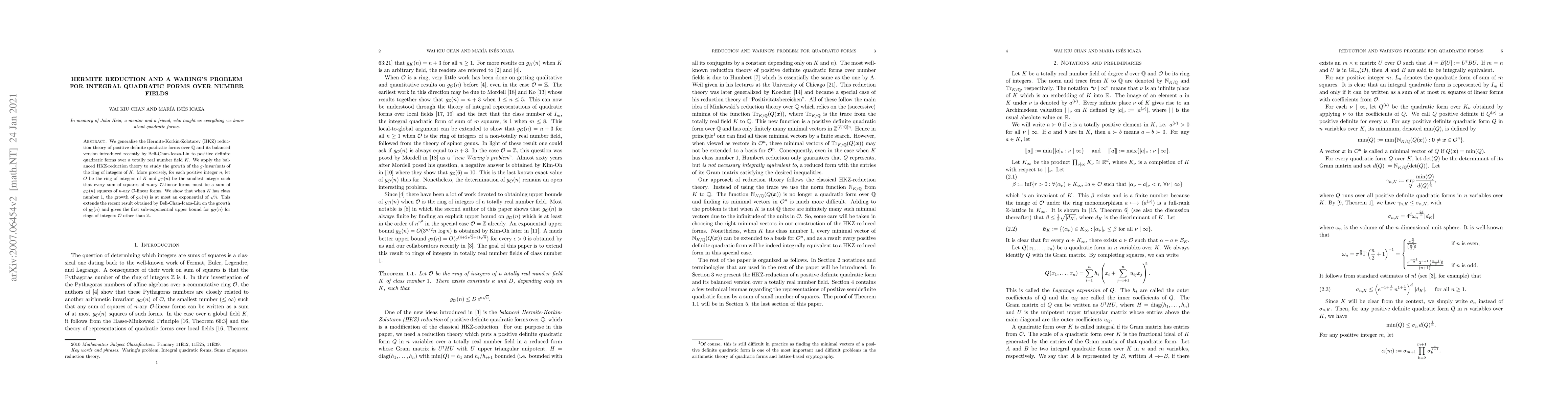This paper generalizes Hermite-Korkin-Zolotarev reduction theory to positive definite quadratic forms over totally real number fields, applying it to study the growth of $g$-invariants in the ring of integers of these fields. It shows that for number fields with class number 1, the growth of these invariants is at most an exponential of $\sqrt{n}$, extending previous results for $\mathbb{Z}$.