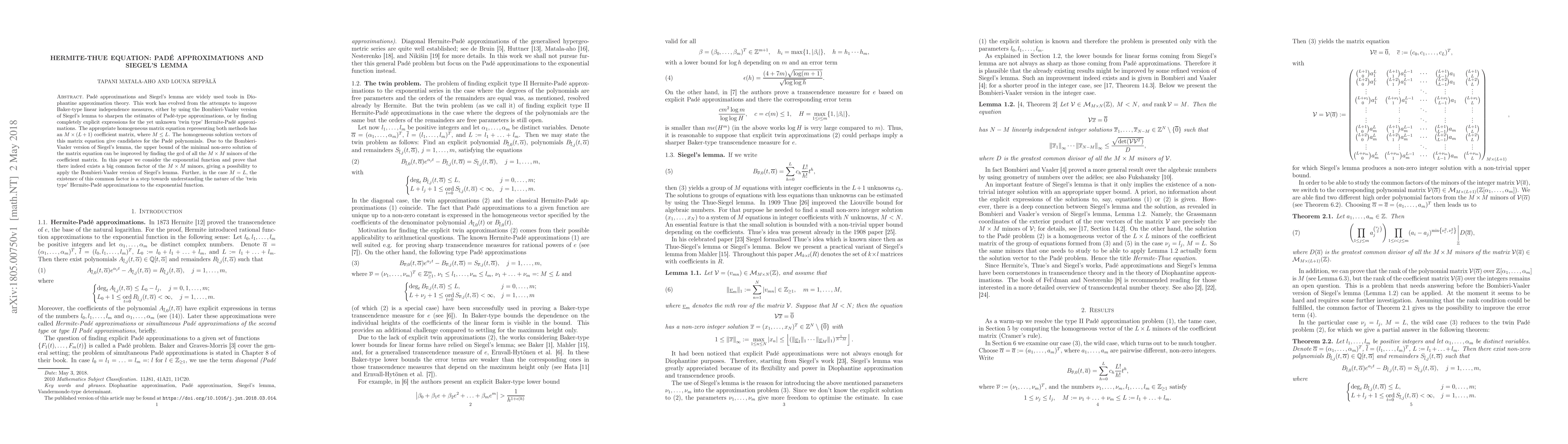 The paper presents a novel approach to sharpening Padé-type approximation estimates using Siegel's lemma, specifically focusing on the homogeneous matrix equation with an $M \times (L+1)$ coefficient matrix where $M \le L$.