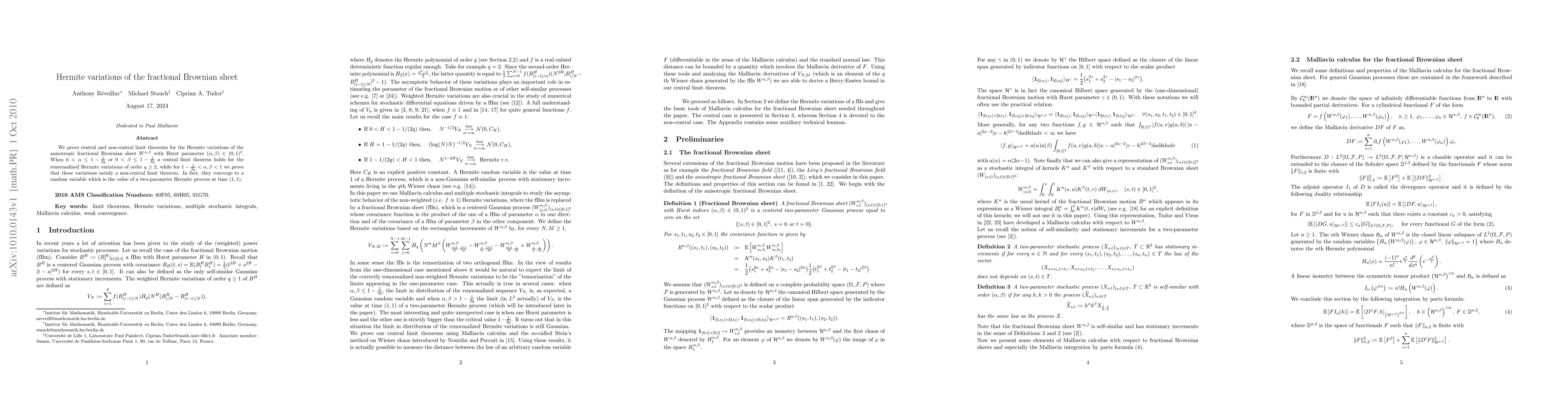 This paper establishes central and non-central limit theorems for Hermite variations of the anisotropic fractional Brownian sheet, showing that renormalized Hermite variations of order $q\geq 2$ follow a central limit theorem under certain conditions, while under others, they converge to a non-central limit governed by a two-parameter Hermite process.