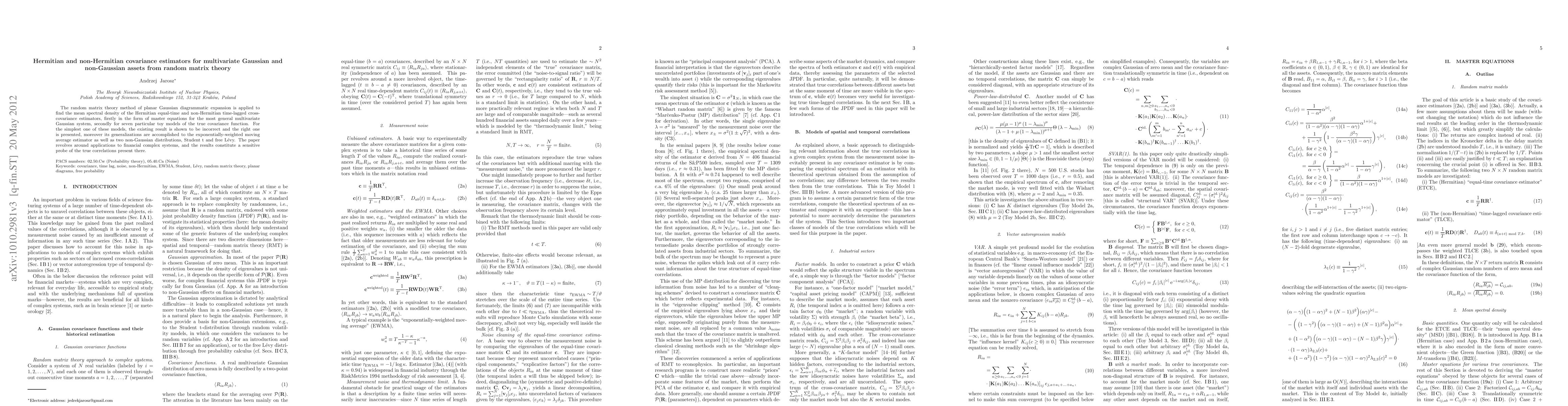 This paper applies random matrix theory to derive mean spectral densities for Hermitian and non-Hermitian covariance estimators in multivariate Gaussian and non-Gaussian systems, correcting an existing error and extending results to financial complex systems, including non-Gaussian distributions like Student t and free Levy.